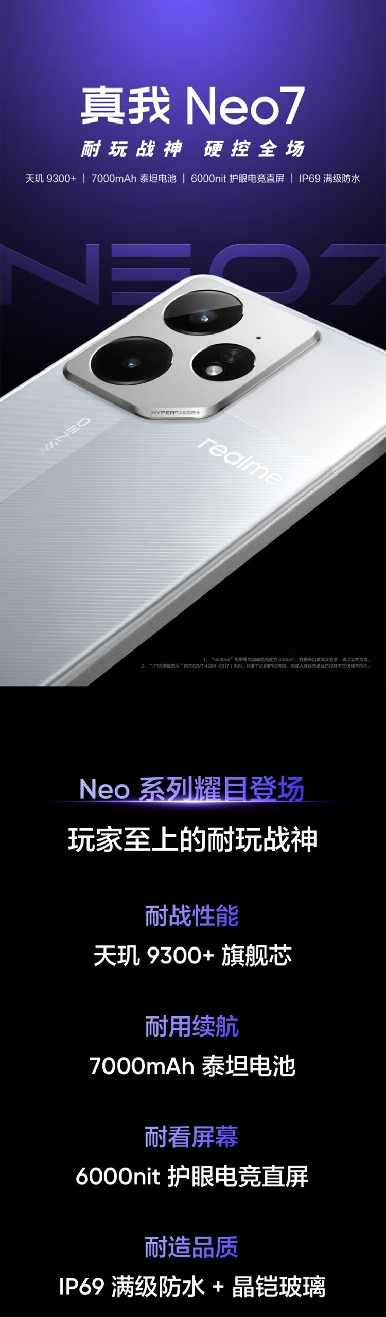 真我(realme)Neo7电竞旗舰天玑9300+智能游戏拍照5G直屏手机 陨石黑 12GB+256GB 官方标配+原封未拆未激活 全国联保