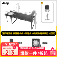 JEEP户外露营液压折叠战术桌igt速开多功能便携式野餐烧烤野炊折叠桌 【豪华装】液压战术桌+烧烤桌+(送收纳包+灯架)