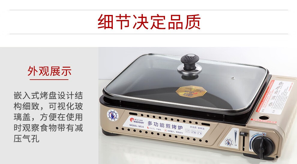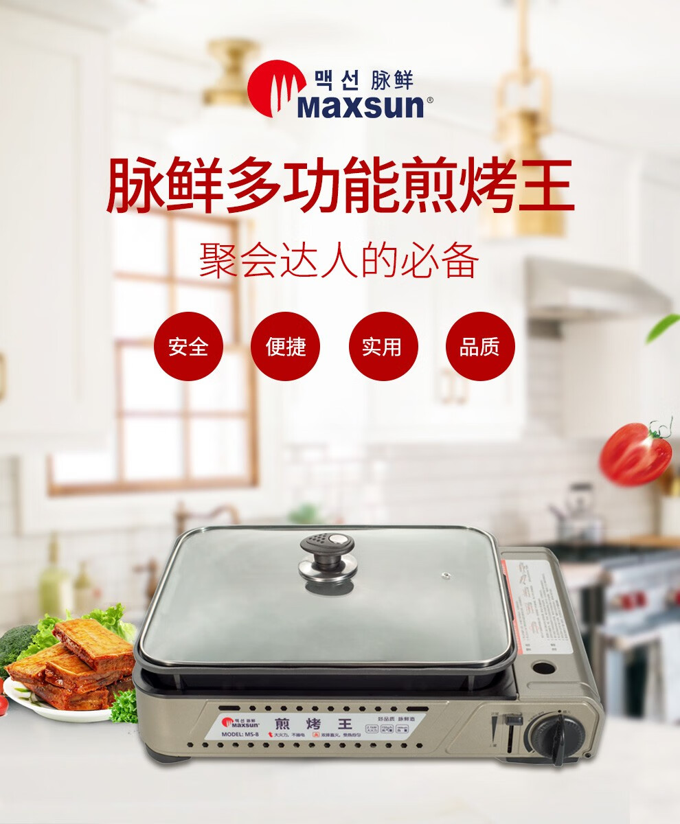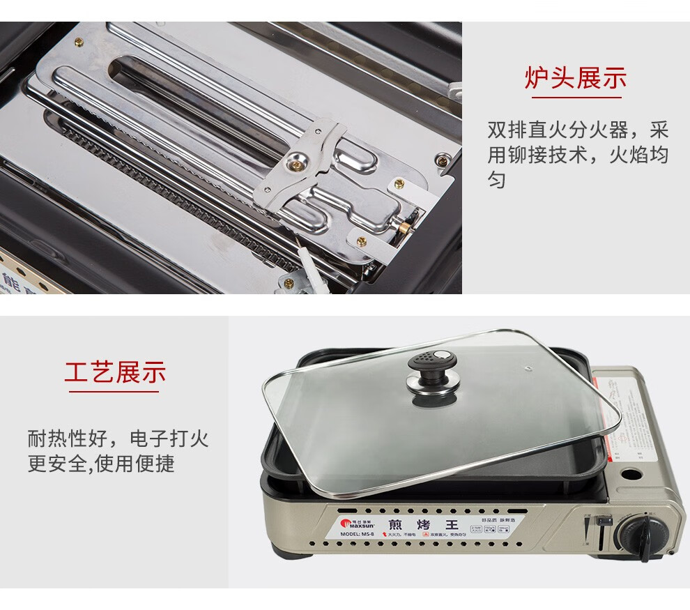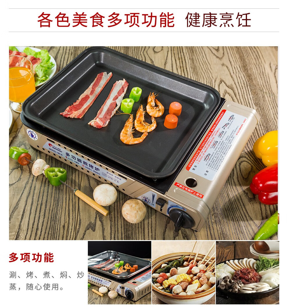 脉鲜家用户外便携式炒菜卡式炉烧烤炉不粘铁板烧烤肉盘移动式卡式炉 烧烤炉(带手提箱)