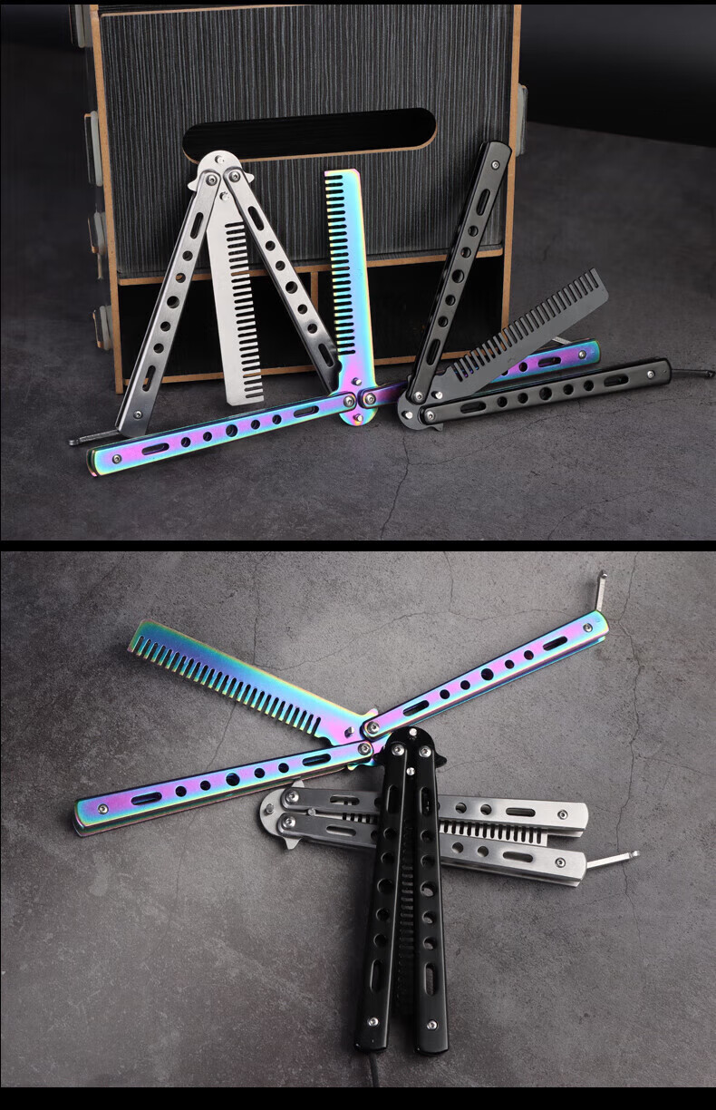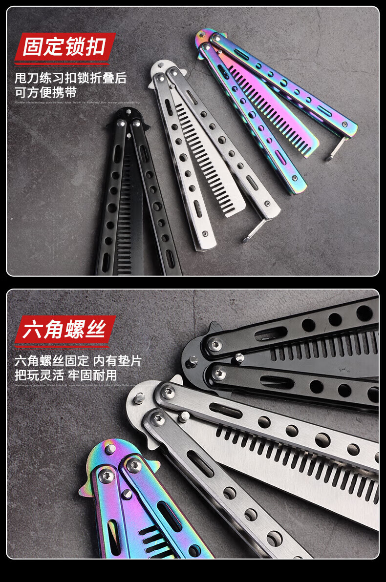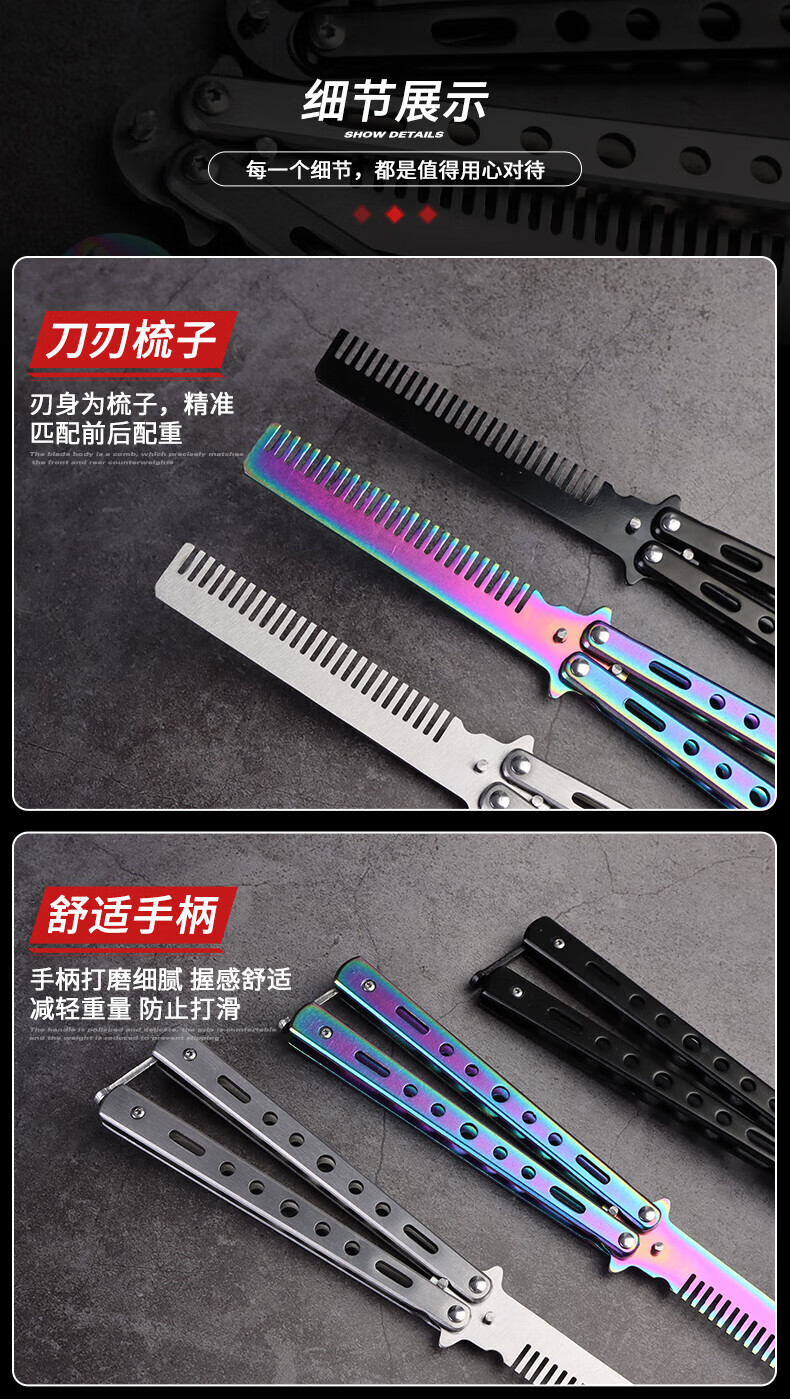 LZJV蝴蝶折叠刀梳子CSGO游戏刀模新手练习甩手折叠户外便携刀具 [炫彩]