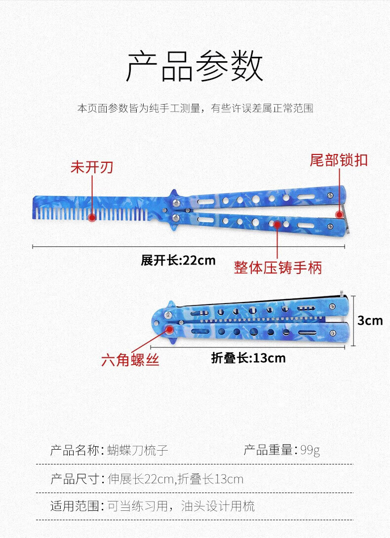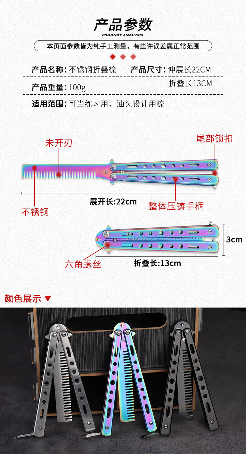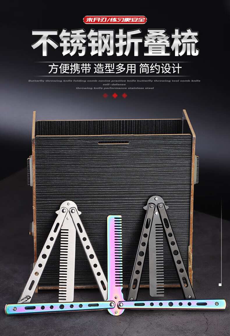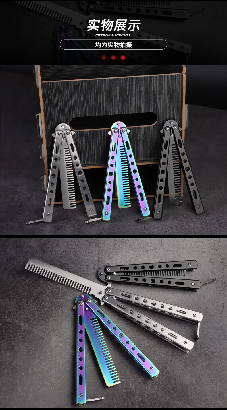 LZJV蝴蝶折叠刀梳子CSGO游戏刀模新手练习甩手折叠户外便携刀具 [炫彩]