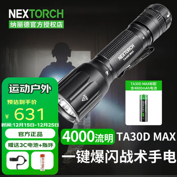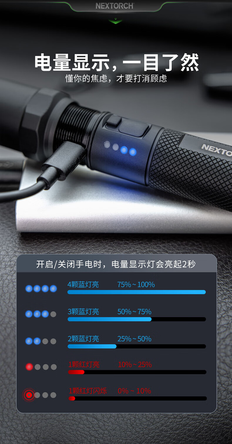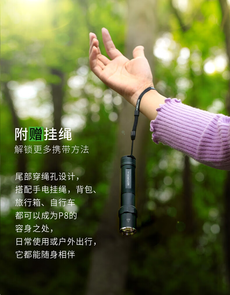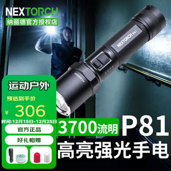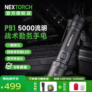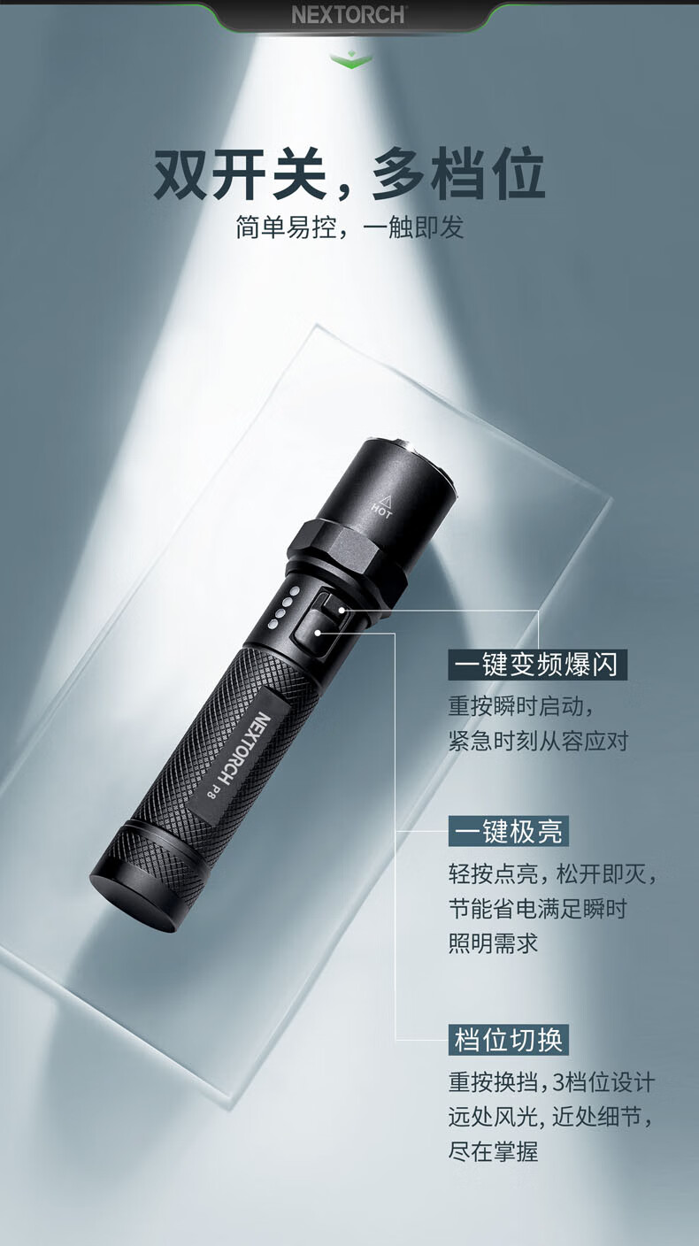 纳丽德(NEXTORCH) P8强光远射手电筒战术一键爆闪高亮1600流明Type-c充电应急 P8标配(升级版1600流明)