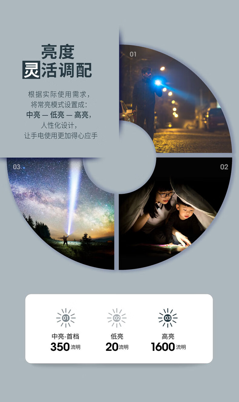 A200赛博探境者双光源可调焦家用户外远泛一体铝合金强光手电 YM-A200(三光源定焦EDC手电筒