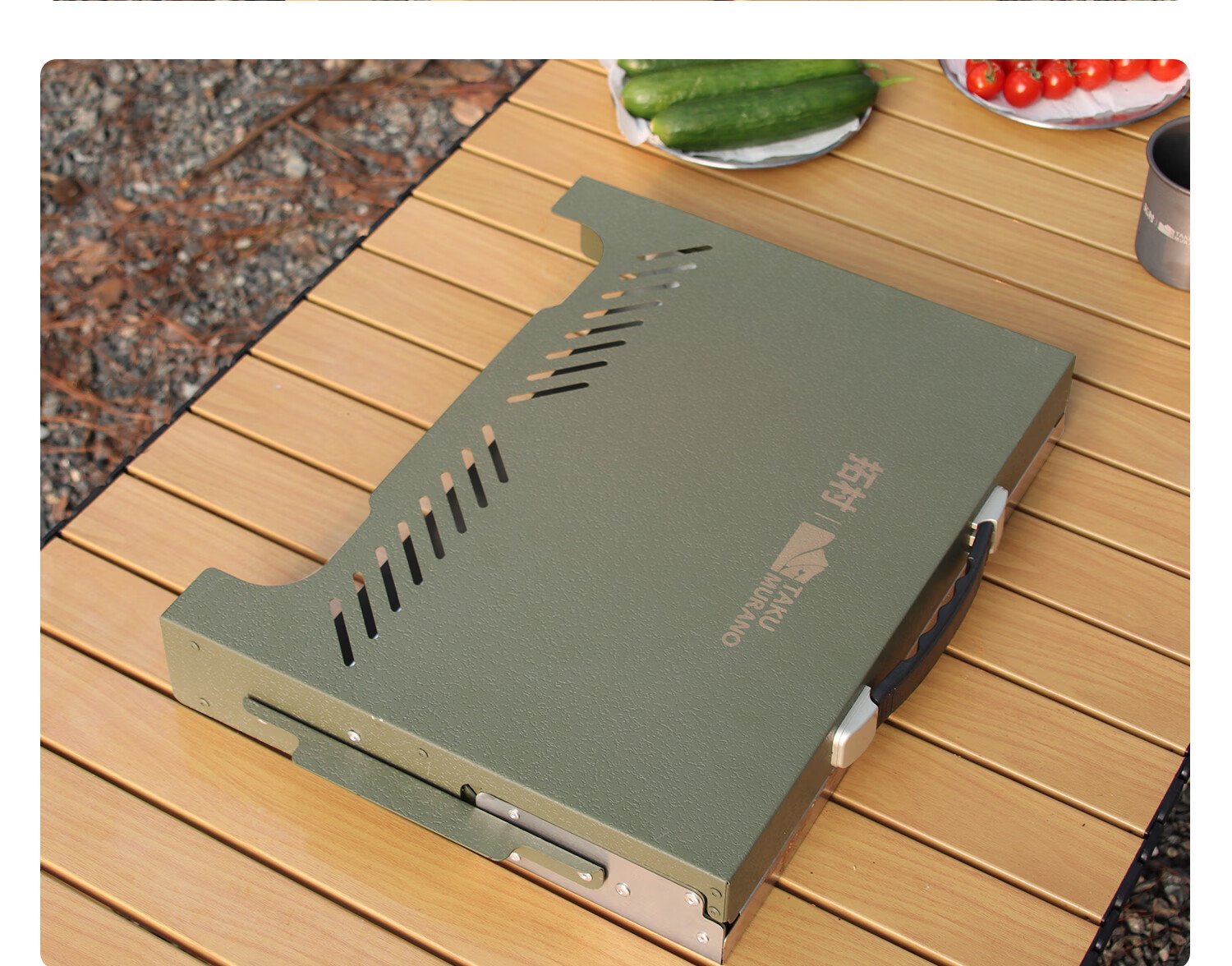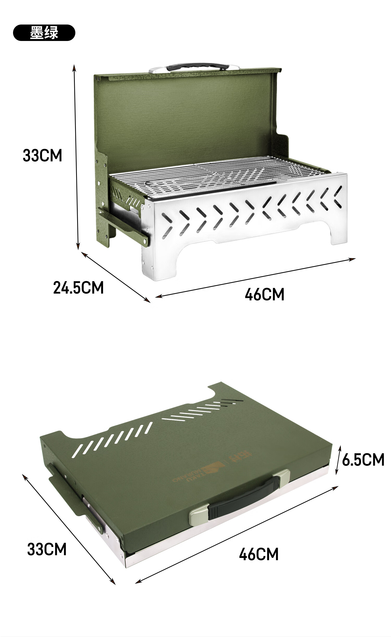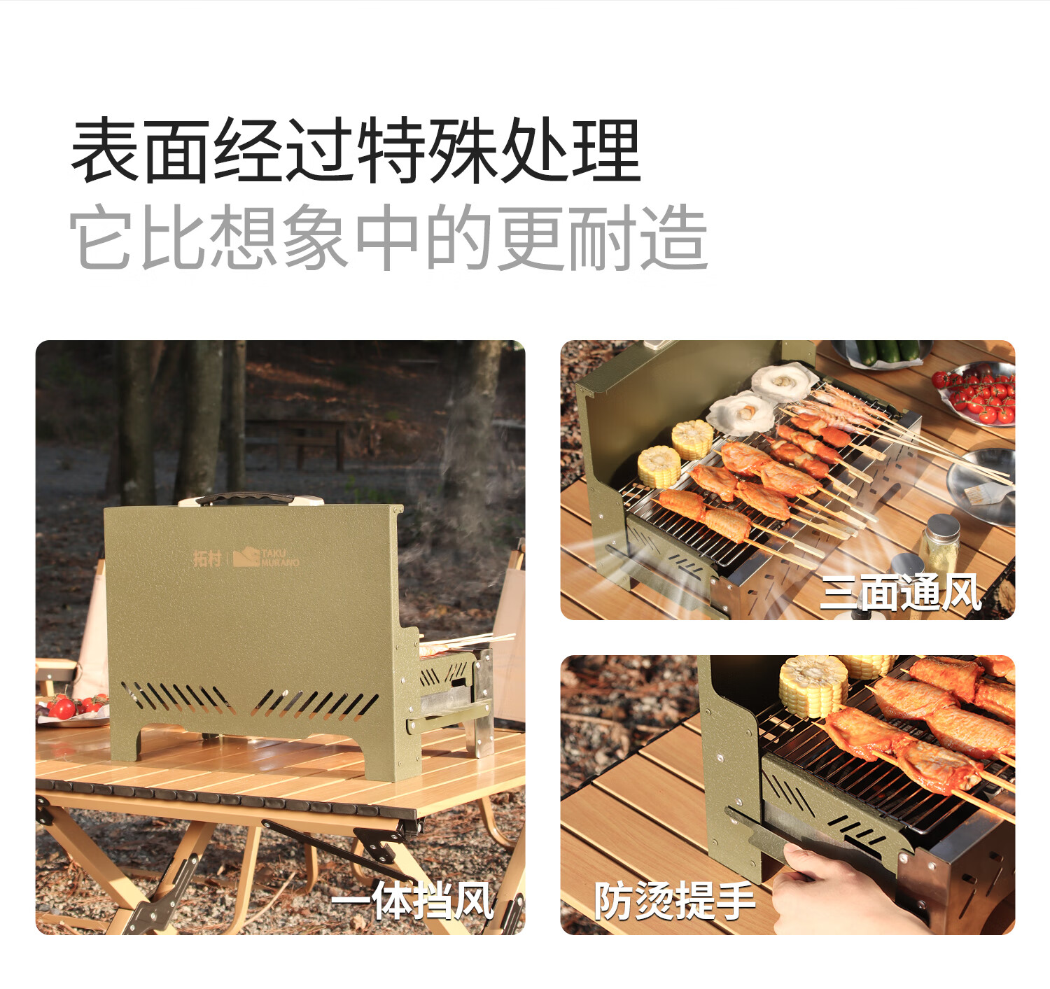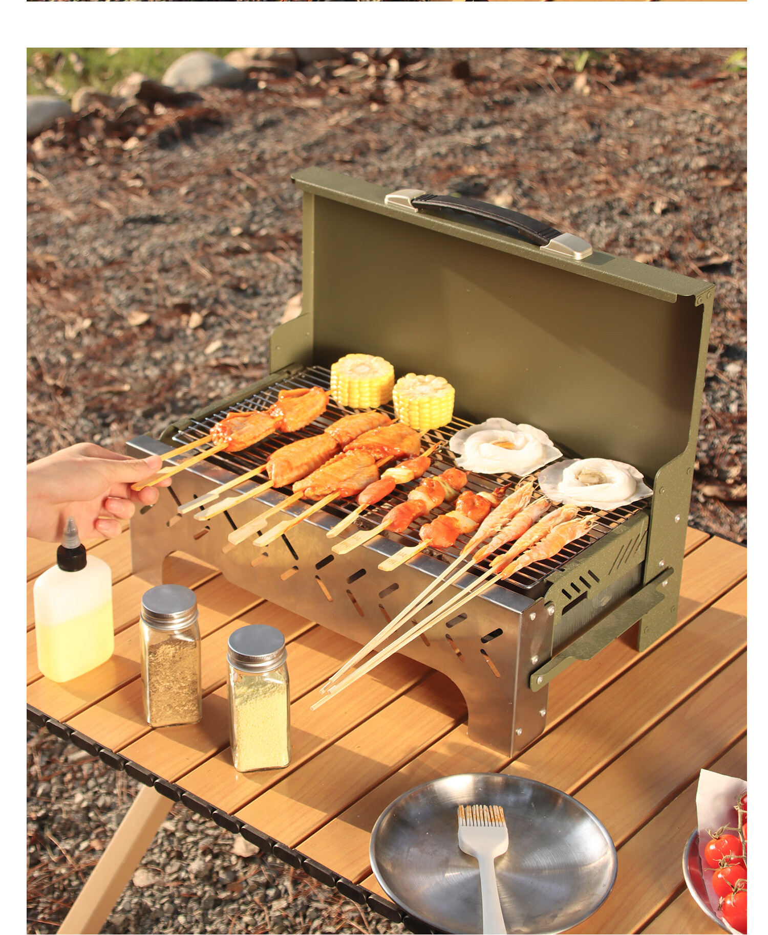 拓村烧烤炉户外烧烤架家用便携式折叠烤串烤肉炉子露营木炭碳烤炉 手提箱烧烤炉-绿色+取盘器