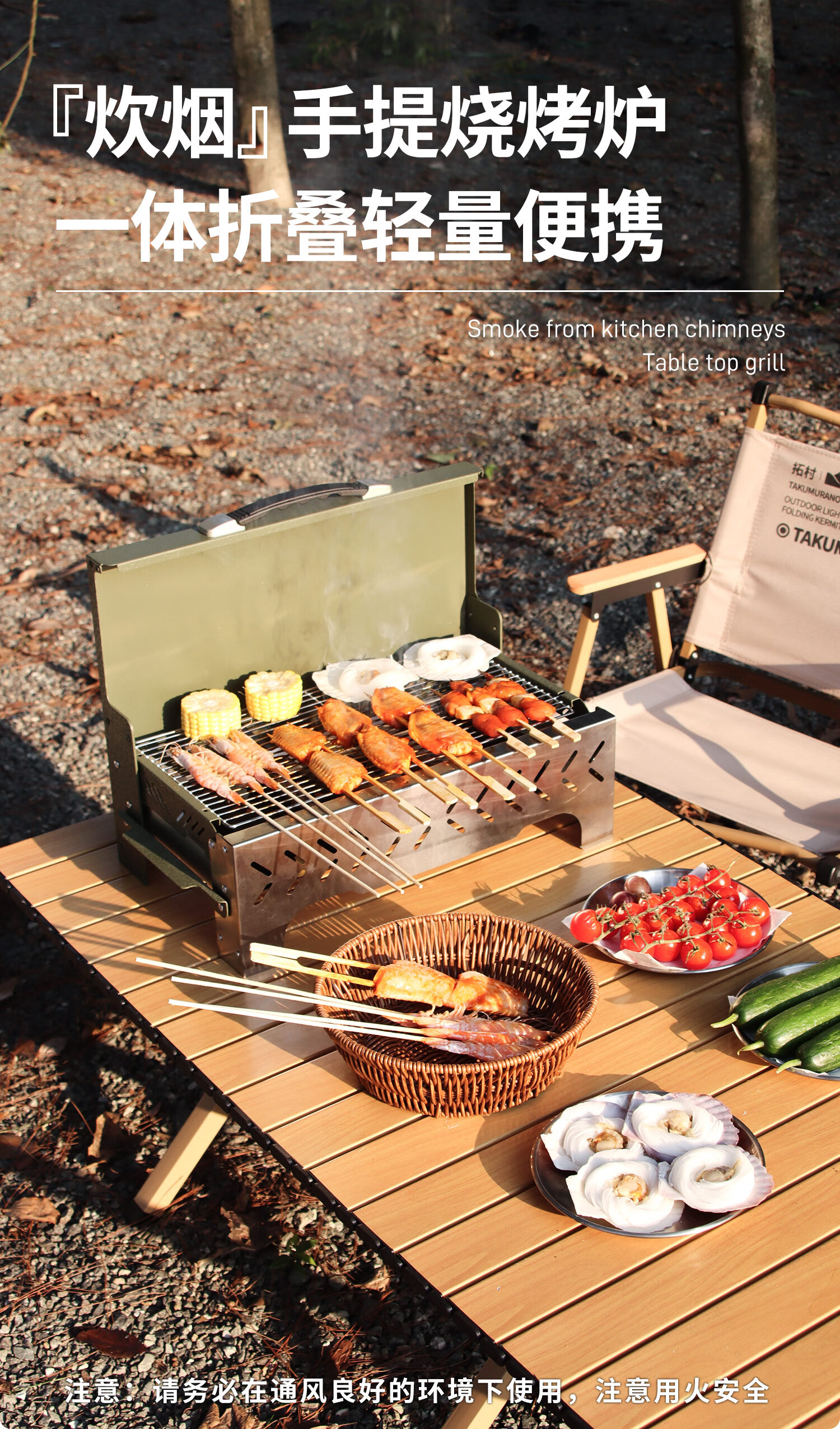 拓村户外卡式炉烧烤炉便携式多功能火锅野炊烤肉烤串炉具围炉煮茶 【无碳烧烤】-2.3KW多功能烧烤炉
