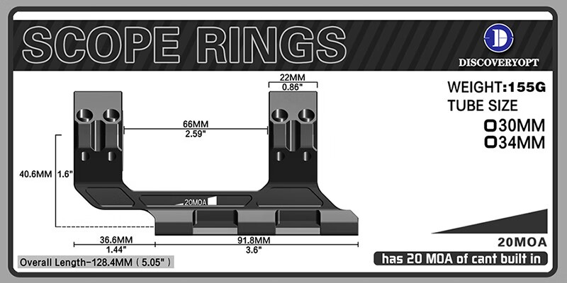 DISCOVERY一体前延夹具30-34管高宽CNC整体加工远距离精确射击使用带20MOA 34MM一体夹具