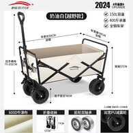 北岳露营推车可折叠户外手推野餐车营地拖车拉杆小拉车桌板烧烤野营车 奶油白【越野款】双刹车越野轮