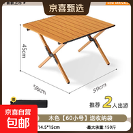 便携折叠露营桌椅野餐桌户外露营碳钢桌子自驾烧烤摆摊旅行轻便桌 60CM木纹蛋卷桌