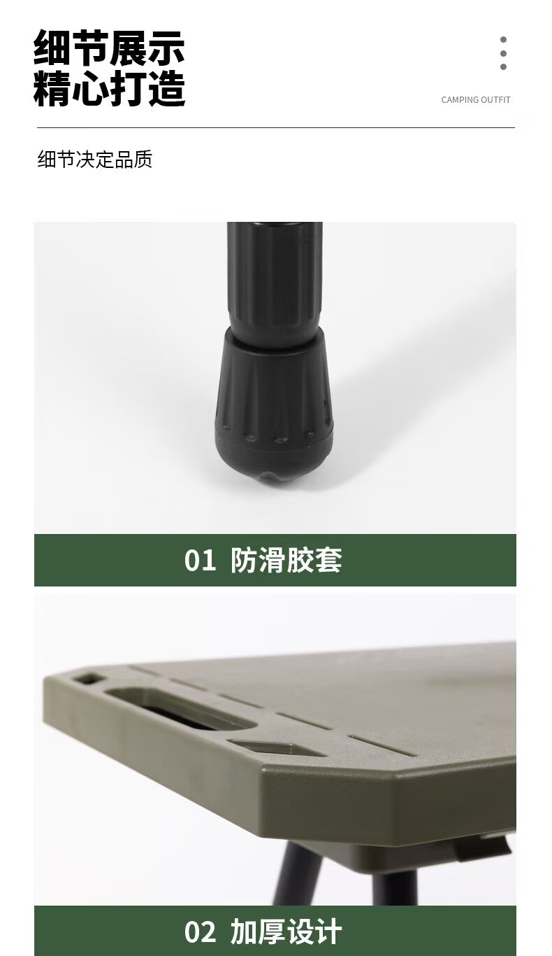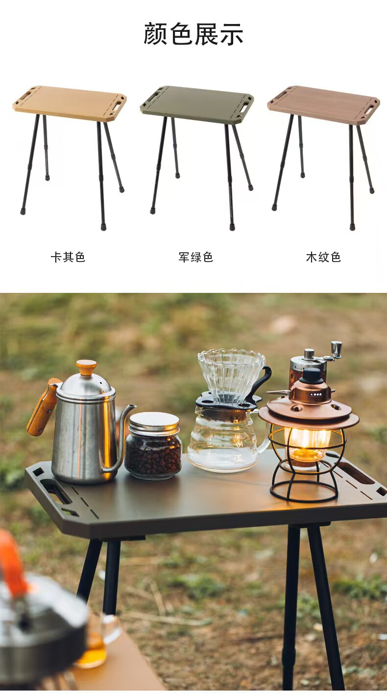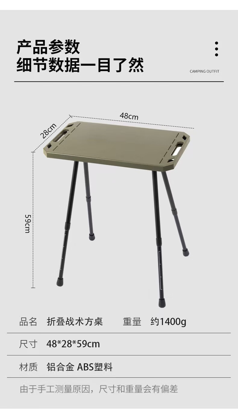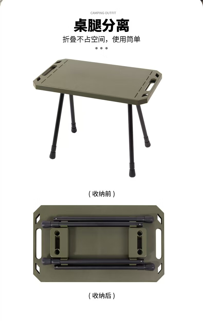 oeny户外战术折叠桌可升降露营桌子便携式轻量化桌野餐桌子置物架精致 战术折叠桌军绿色