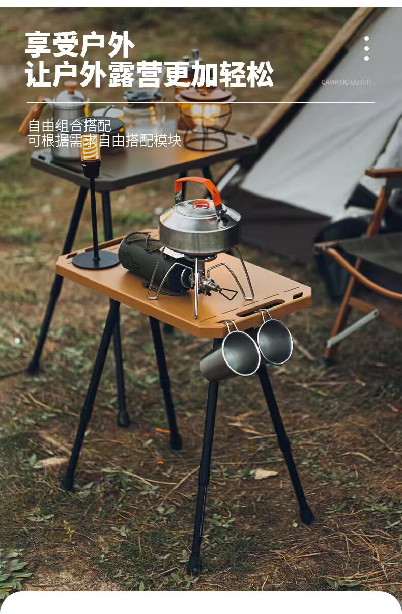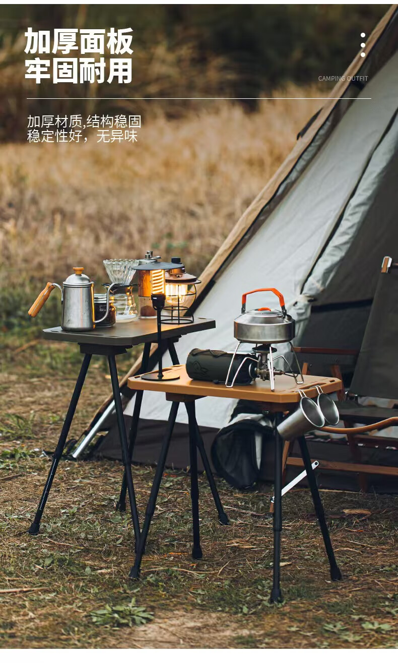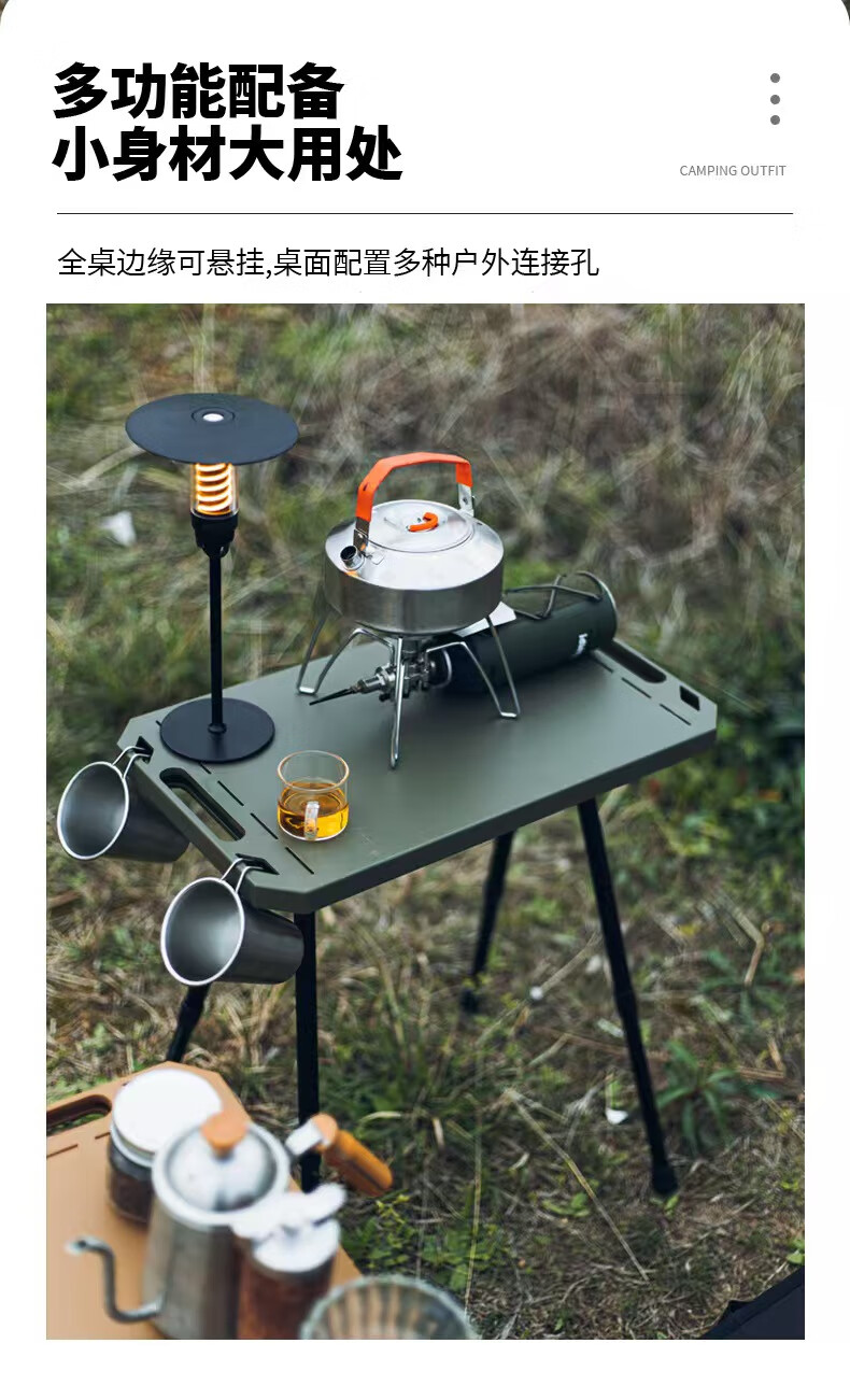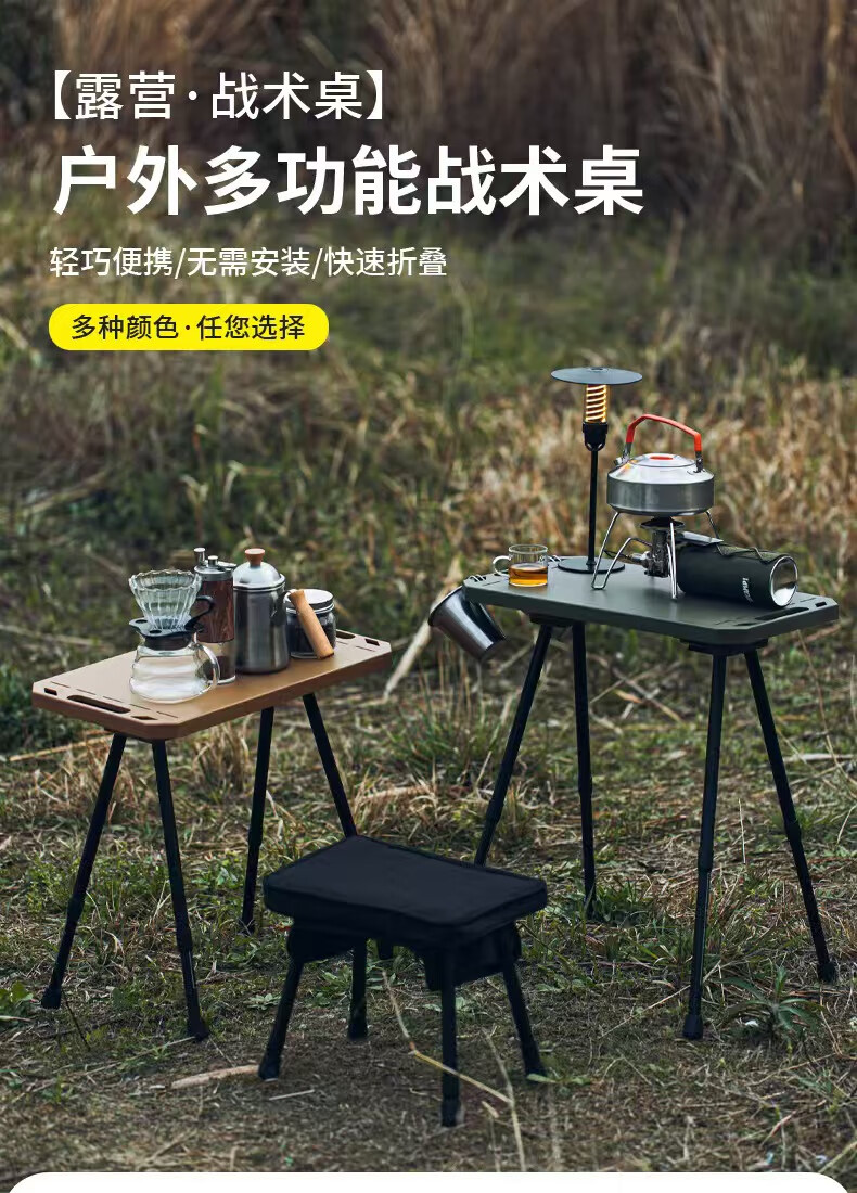 oeny户外战术折叠桌可升降露营桌子便携式轻量化桌野餐桌子置物架精致 战术折叠桌军绿色