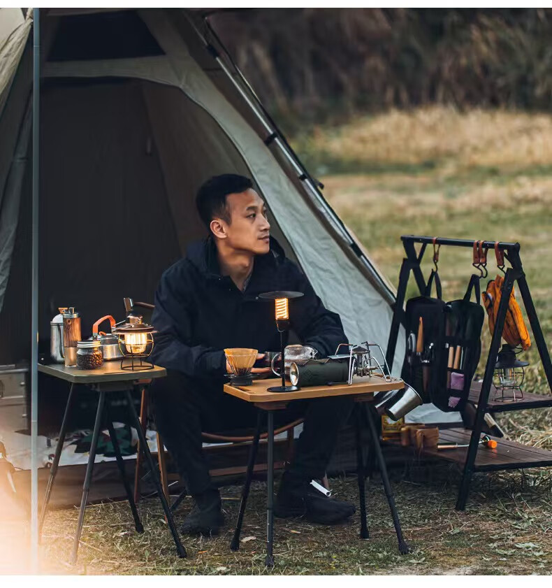 black dog户外折叠露营桌铝合金小圆桌超轻便携式野餐装备用品套装茶几 便携小圆桌_夜幕黑