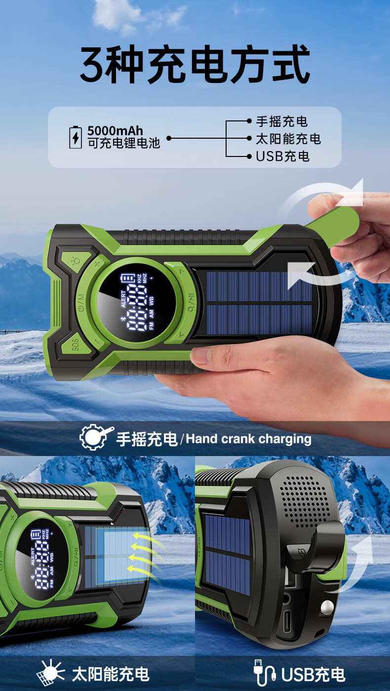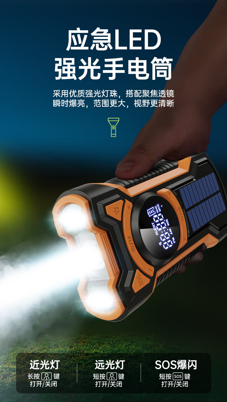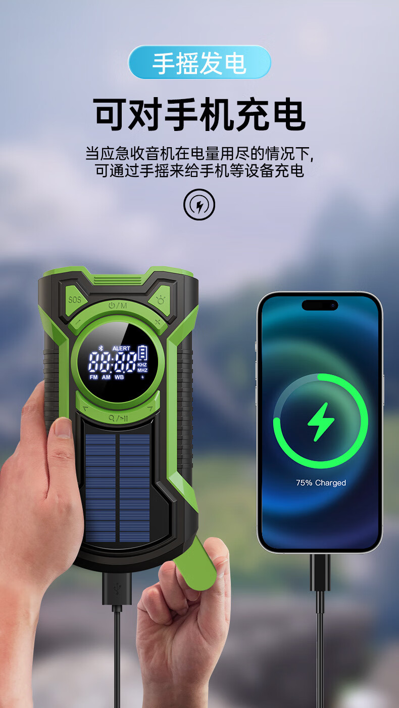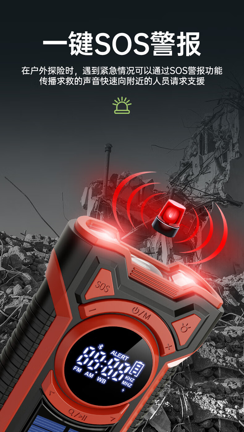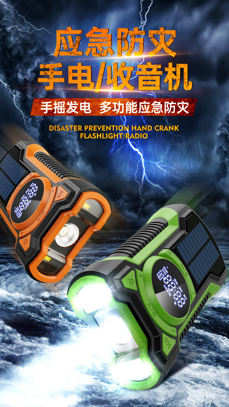 仙僖俫手摇发电收音机手电筒应急太阳能照明灯战备防灾多功能便携充电宝