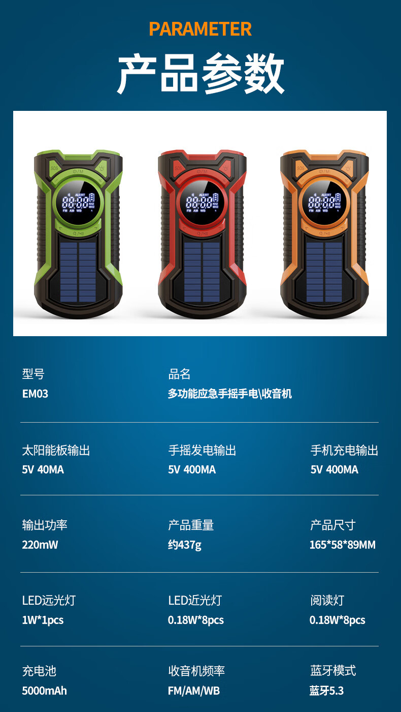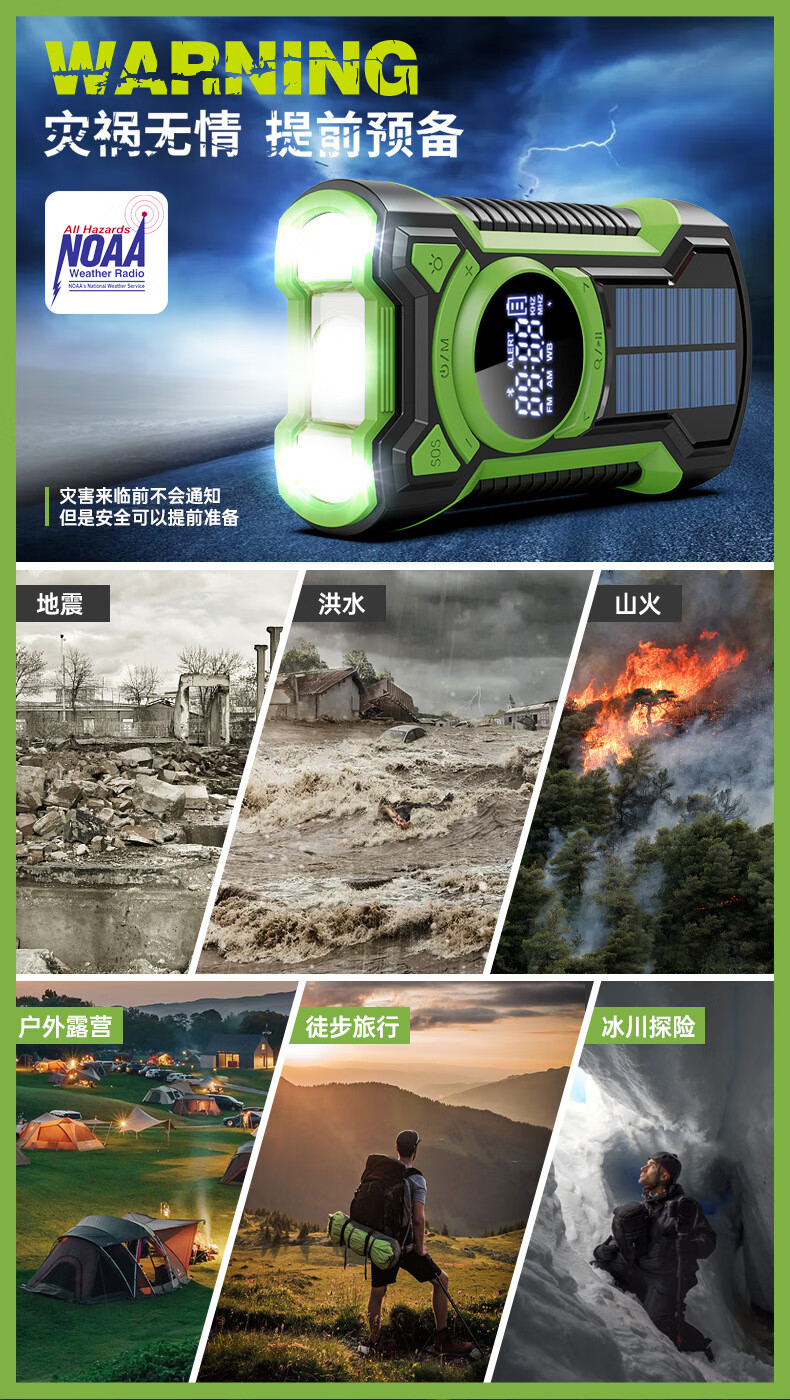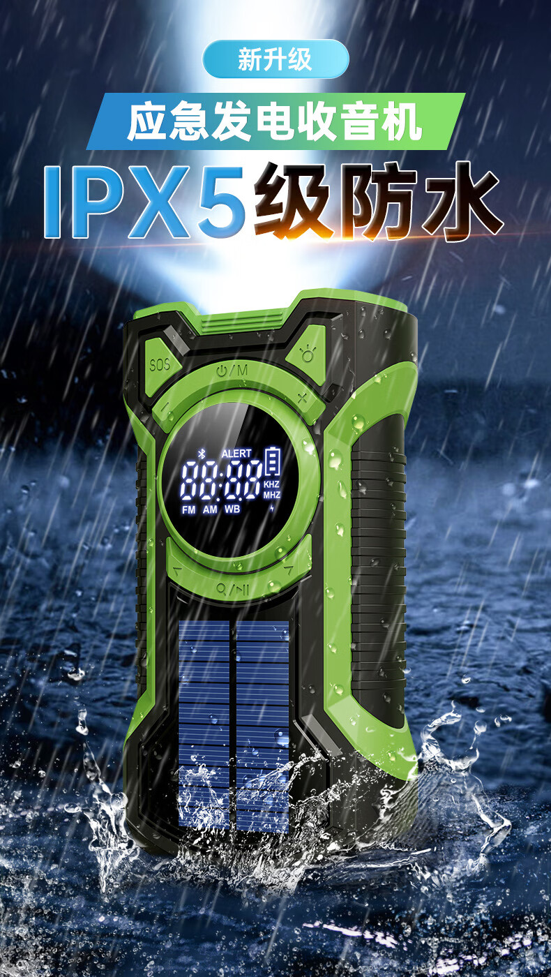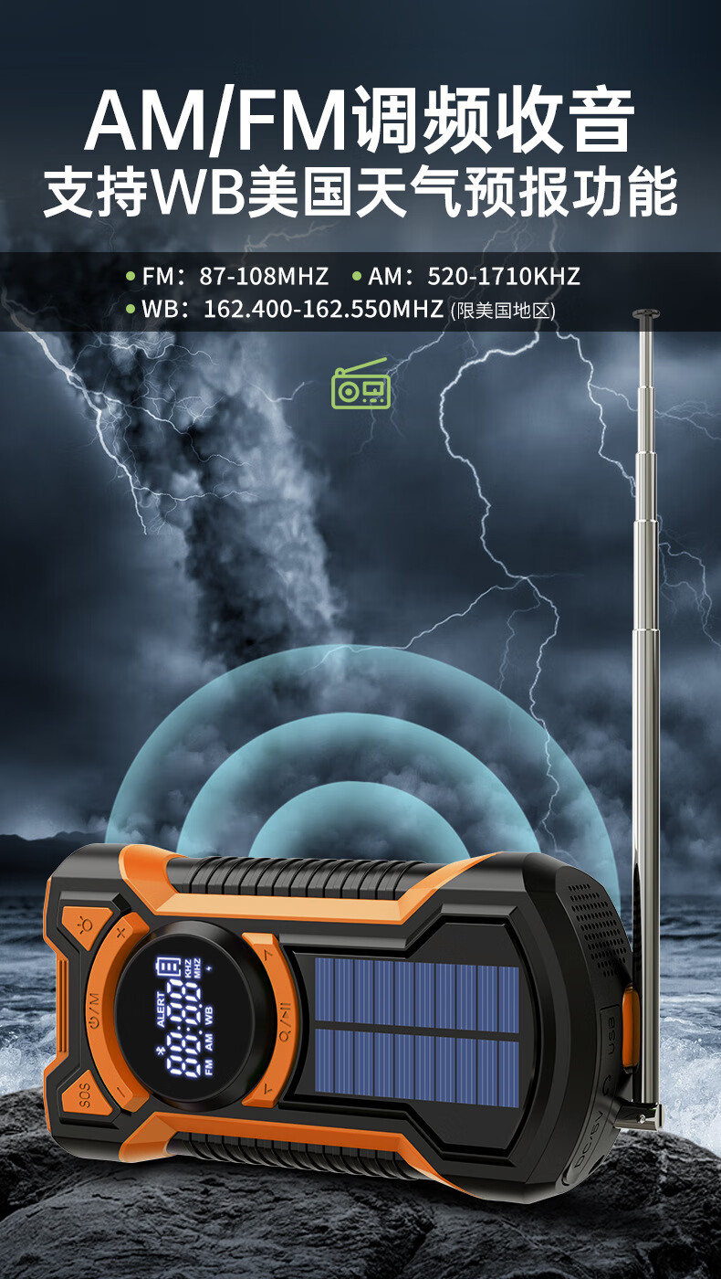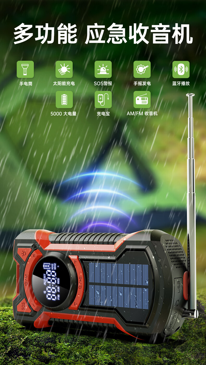 仙僖俫手摇发电收音机手电筒应急太阳能照明灯战备防灾多功能便携充电宝