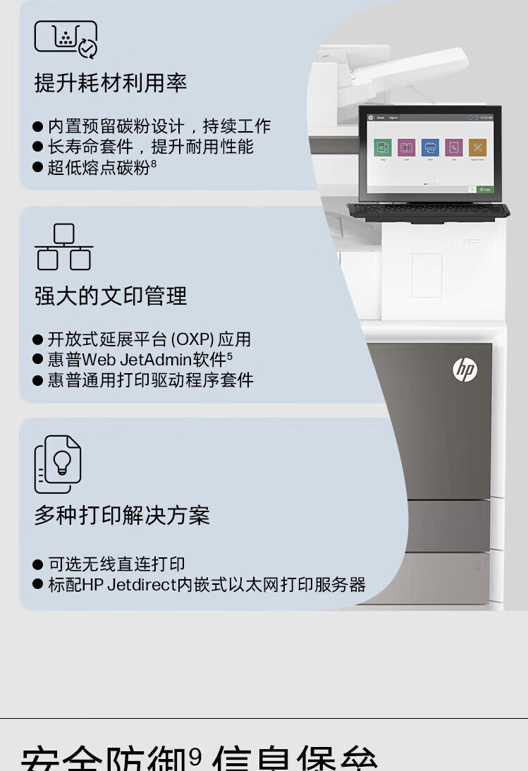 惠普(HP)打印机 E87740z a3a4彩色激光打印复印扫描一体机 复合机 红头文件打印 40页/分钟 E87740z【预订款】(官方1年上门保-修)