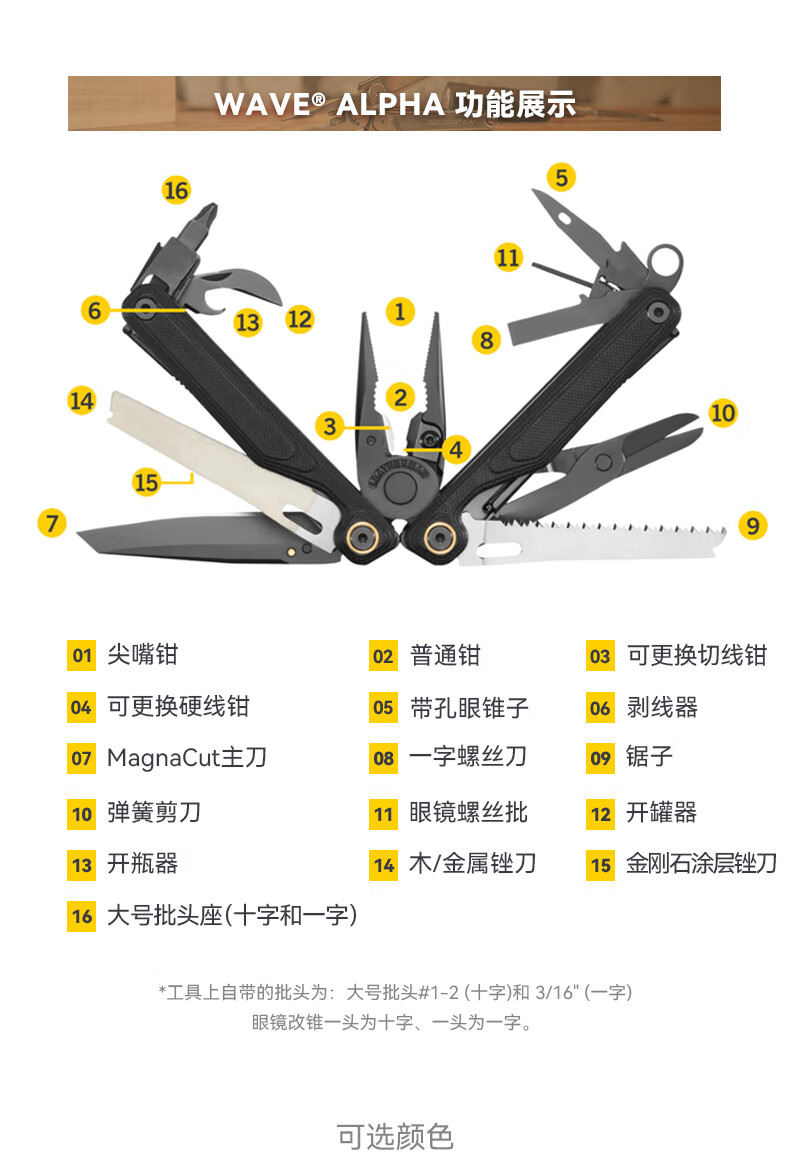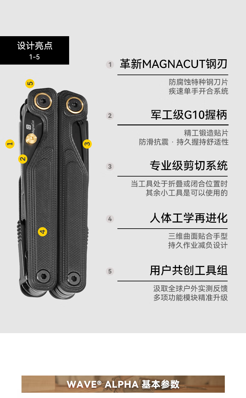 莱特曼Leatherman波浪阿尔法WAVE ALPHA 多功能工具钳MagnaCut主刀户外 黑曜石