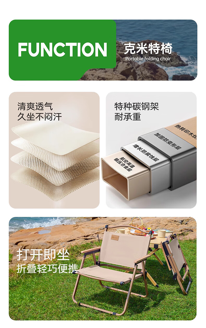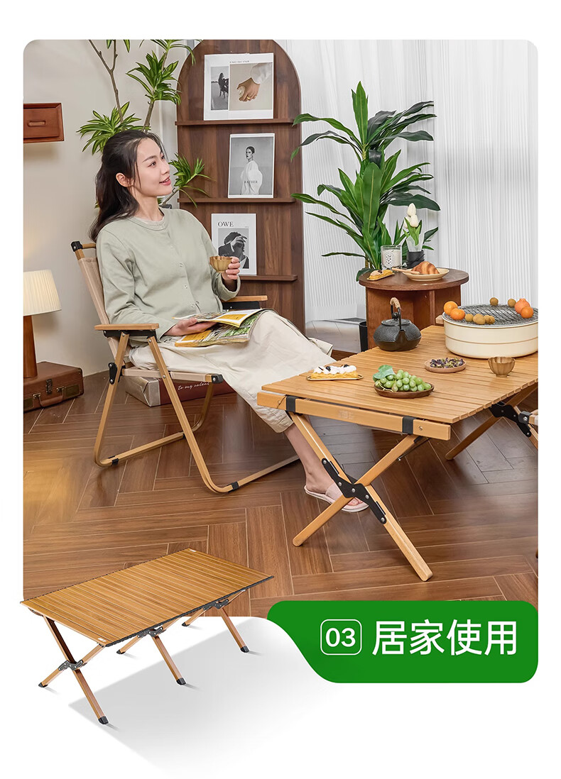 个人觉得这套户外桌椅颜值很高,展开和折叠收纳都很方便,无论是在室外还是室内都适用。 不足之处在于收到货时,外包装有破损,有的被雨水淋湿,好在不影响使用。