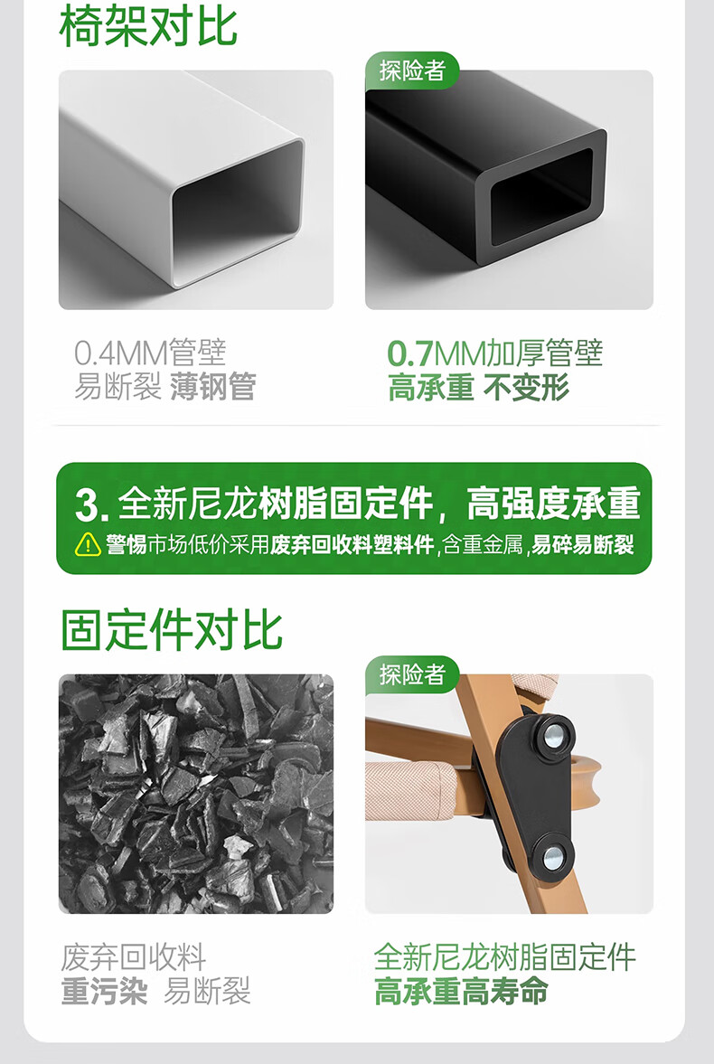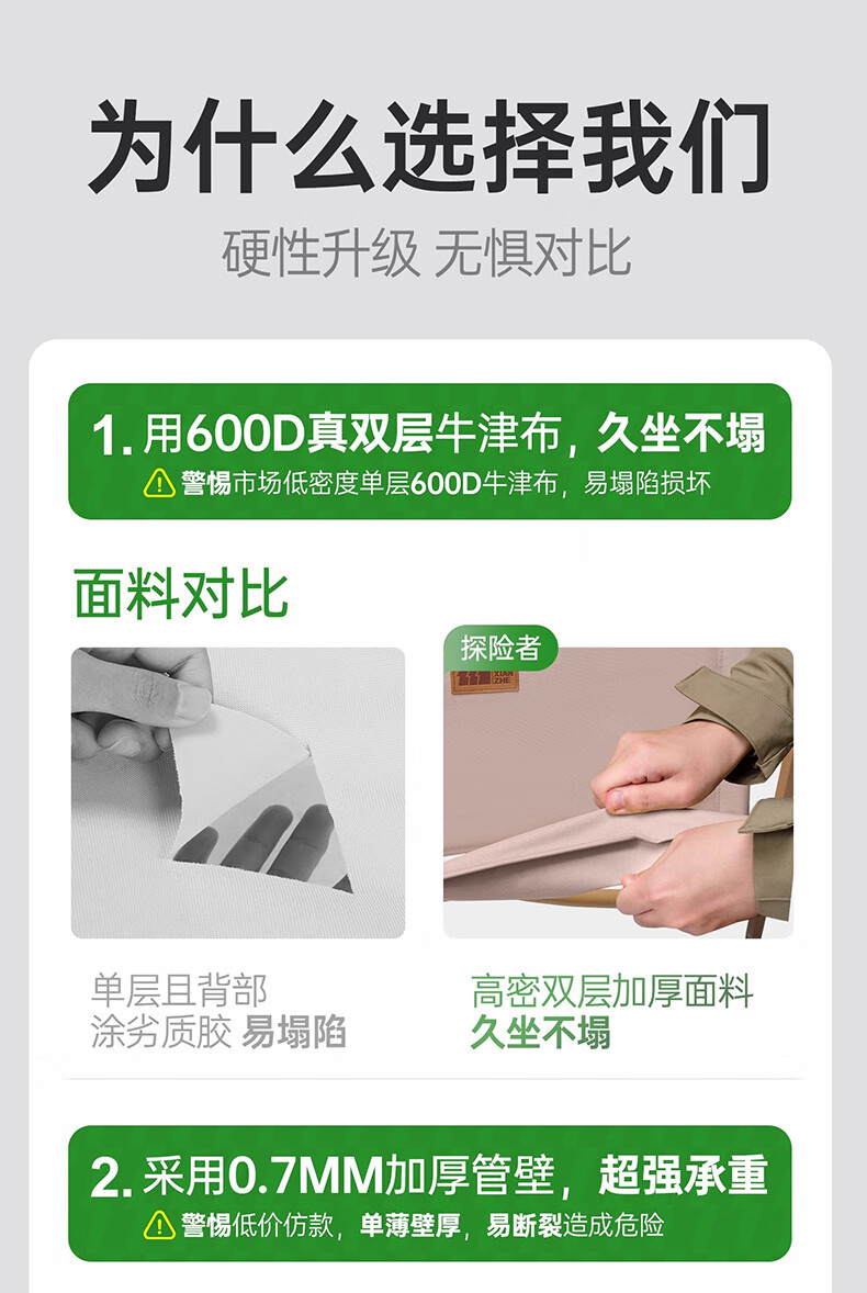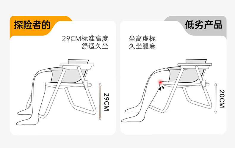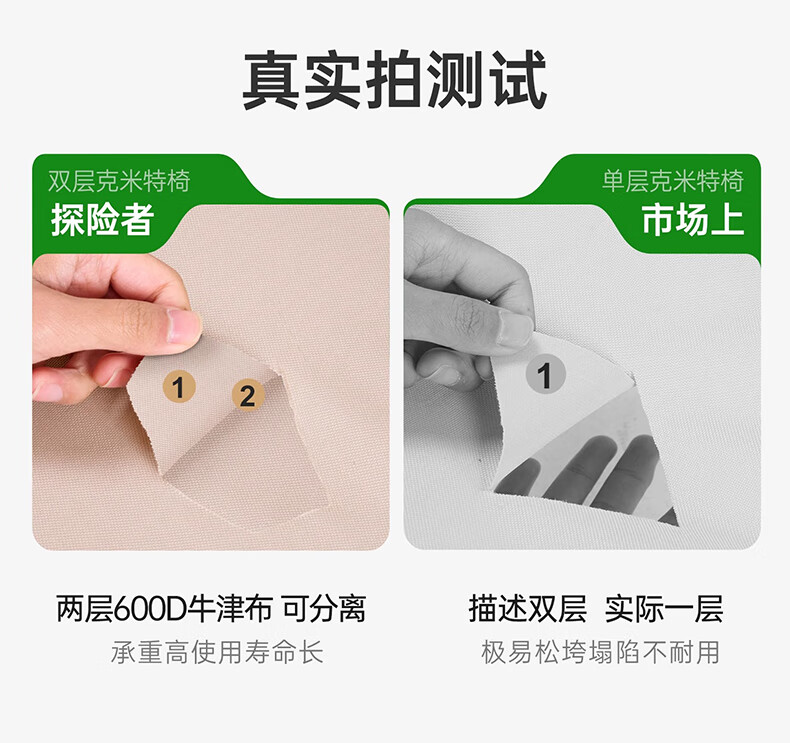 我已经买了好几把这样的折椅了,都没用多久就坏了,我看了这款折椅承重360斤希望能用的时间长点。