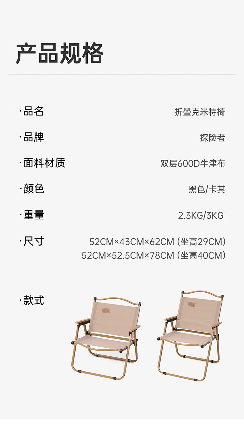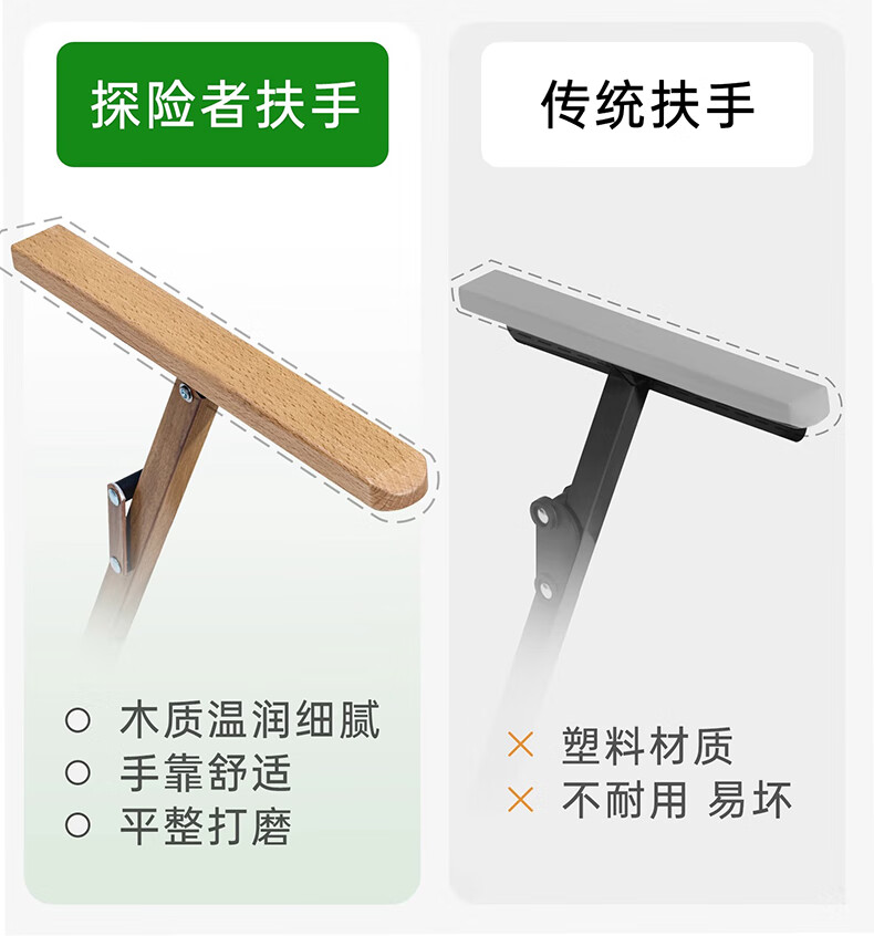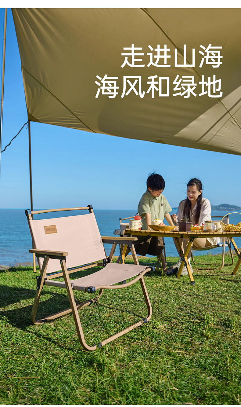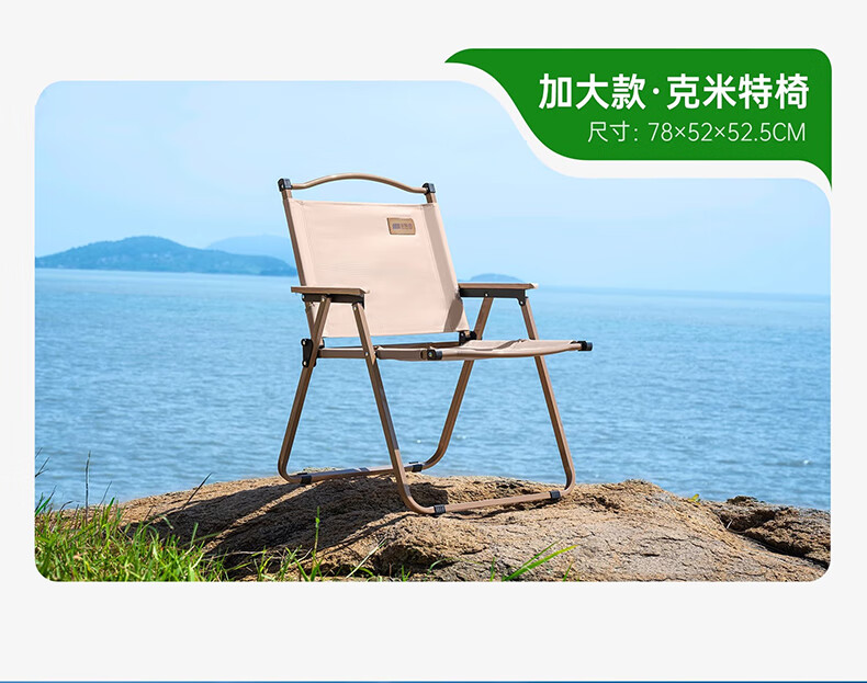 【探险者制造商】克米特椅户外折叠椅子躺椅露营椅沙滩椅户外椅 【黑色椅架】中号卡其-榉木扶手