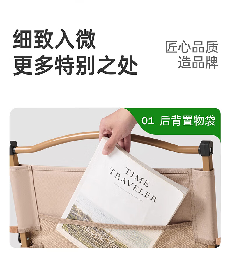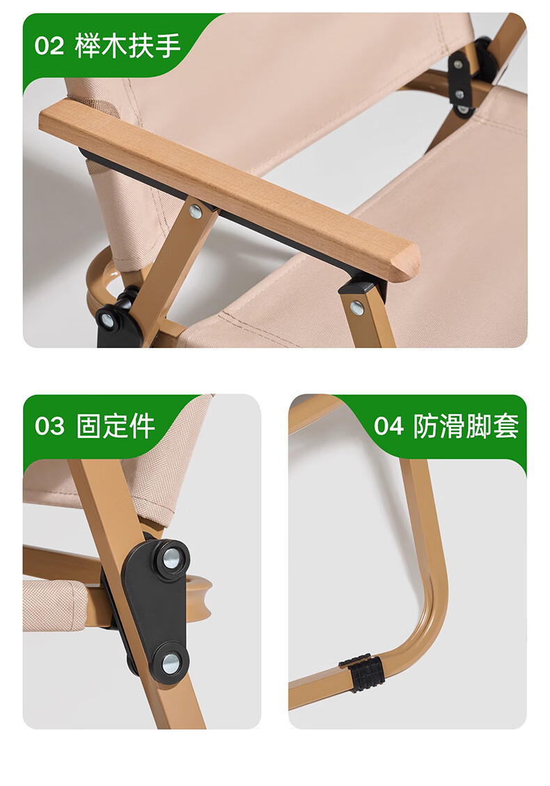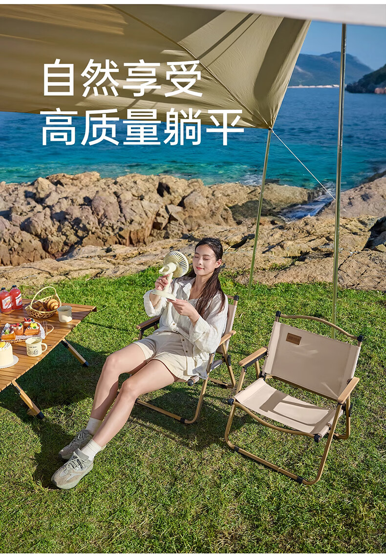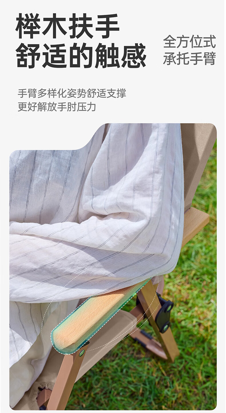 【探险者制造商】克米特椅户外折叠椅子躺椅露营椅沙滩椅户外椅 【黑色椅架】中号卡其-榉木扶手