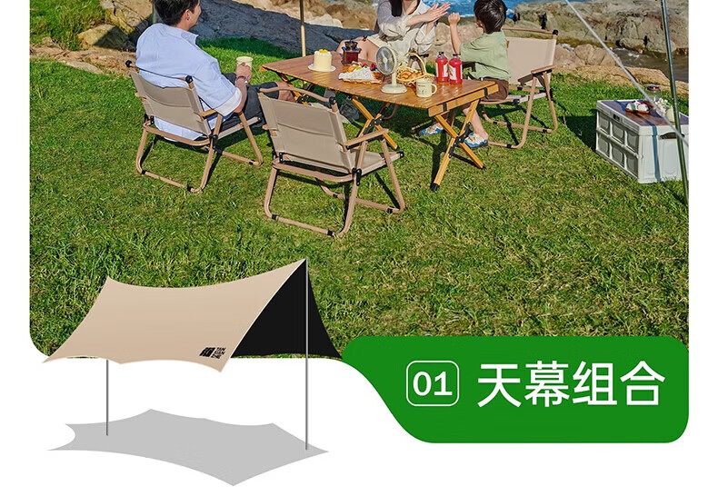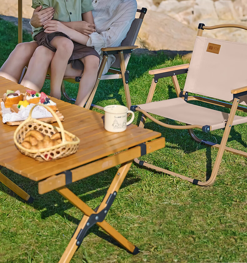 清系便携式露营桌子野餐可折叠克米特椅野营用品装备户外折叠桌蛋卷桌 大号卡其色【黑色椅架】