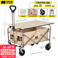 探险者露营车户外折叠推车营地车快递摆摊野餐车大容量野营拖车 卡其升级款160L【万向静音轮+桌板】