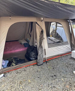 屋脊六可以同时住下四个人,适合家庭出行,拆开以后,有两层里面那层是沙织透气,外面那一层可以防风,主要是比自己家里原来的帐篷要大一点,非常适合想升级的小伙伴