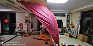 马上试安装了!虽然简单,但建议商家还是配上说明书为好!我也是琢磨了十多分钟才高明白😃😃😃。感受:帐篷设计新颖,安装布置简单,整体轻巧方便。不足:挑竿头顶帽子设计不够扎实,估计安装几次(不会超十次)就顶通(破)了,建议改进顶袋结构质量。