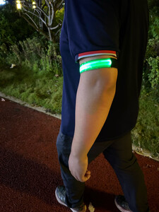 做工挺精致,夜跑戴在手臂大小刚好,发光绿色很亮,还可以充电的,很棒