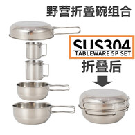 爱加芬 户外餐具便携套装野营折叠碗筷野餐自驾游必备露营装备用品全套 304不锈钢5件套杯碗