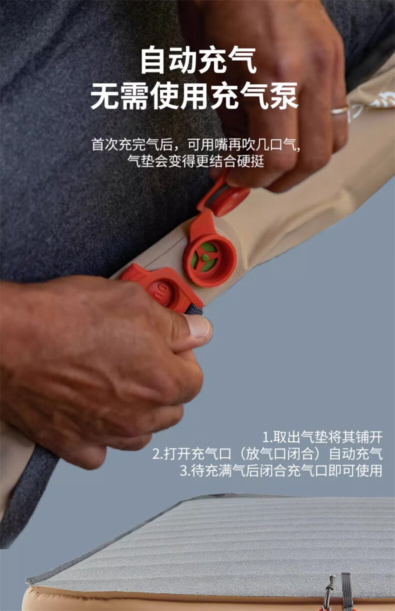 迪卡侬(DECATHLON)自动充气床垫露营单人户外防潮垫帐篷便携快速舒适加厚ODCF 单人奶茶色拍两件可拼接双人(质