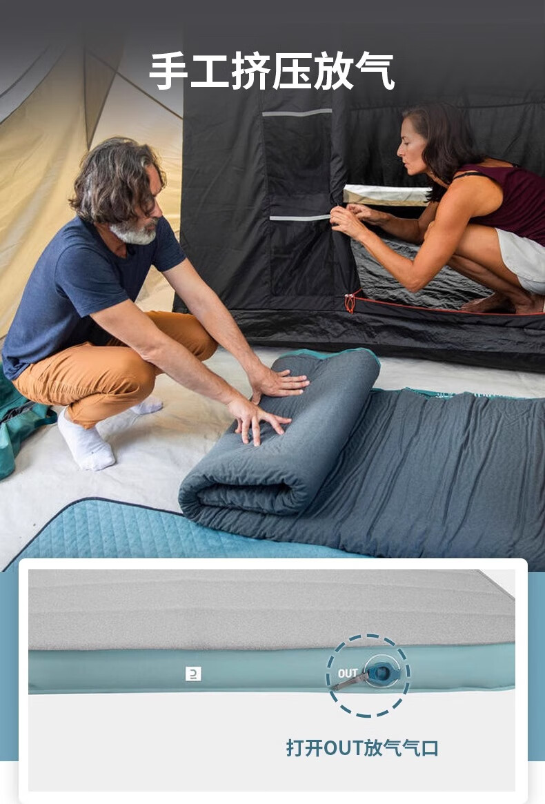 迪卡侬自动充气床垫露营单人户外防潮垫便携快速舒适加厚ODCF 双人-静谧蓝(新老款随机发货)