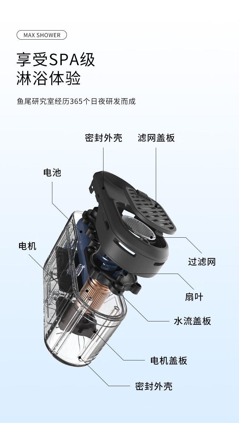 FLEXTAILGEAR鱼尾户外便携式淋浴器露营无线花洒宿舍帐篷简易自吸泵洗澡神器 【豪华版】户外便携式沐浴器