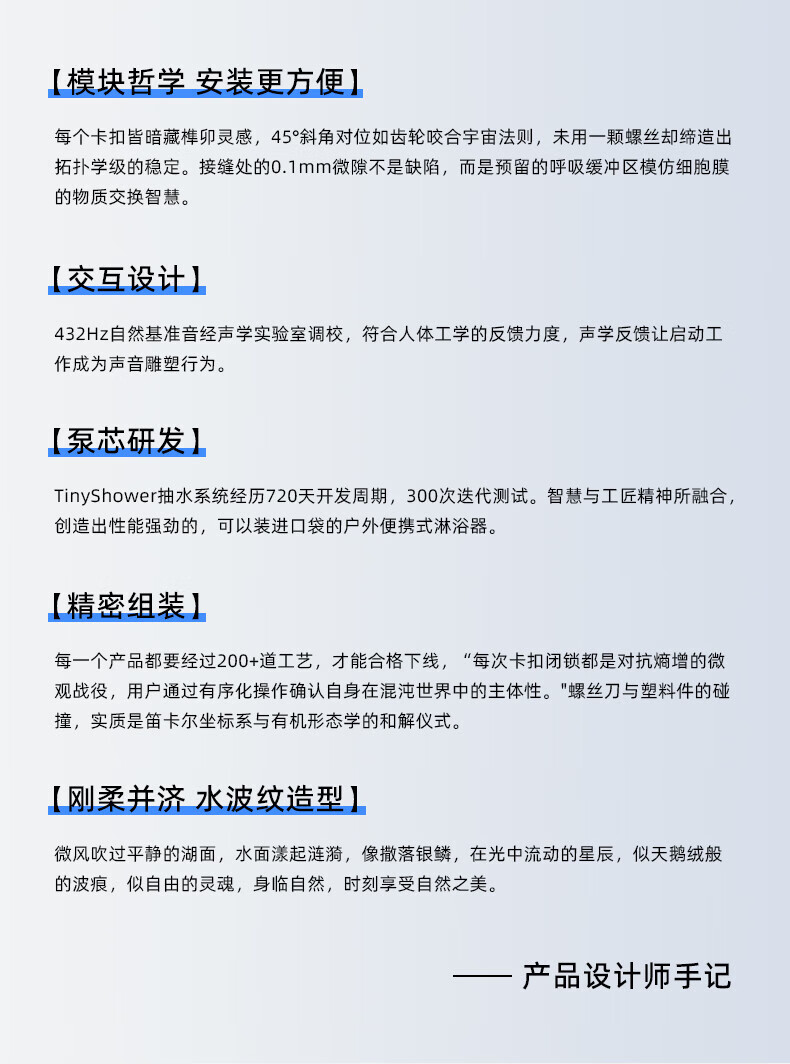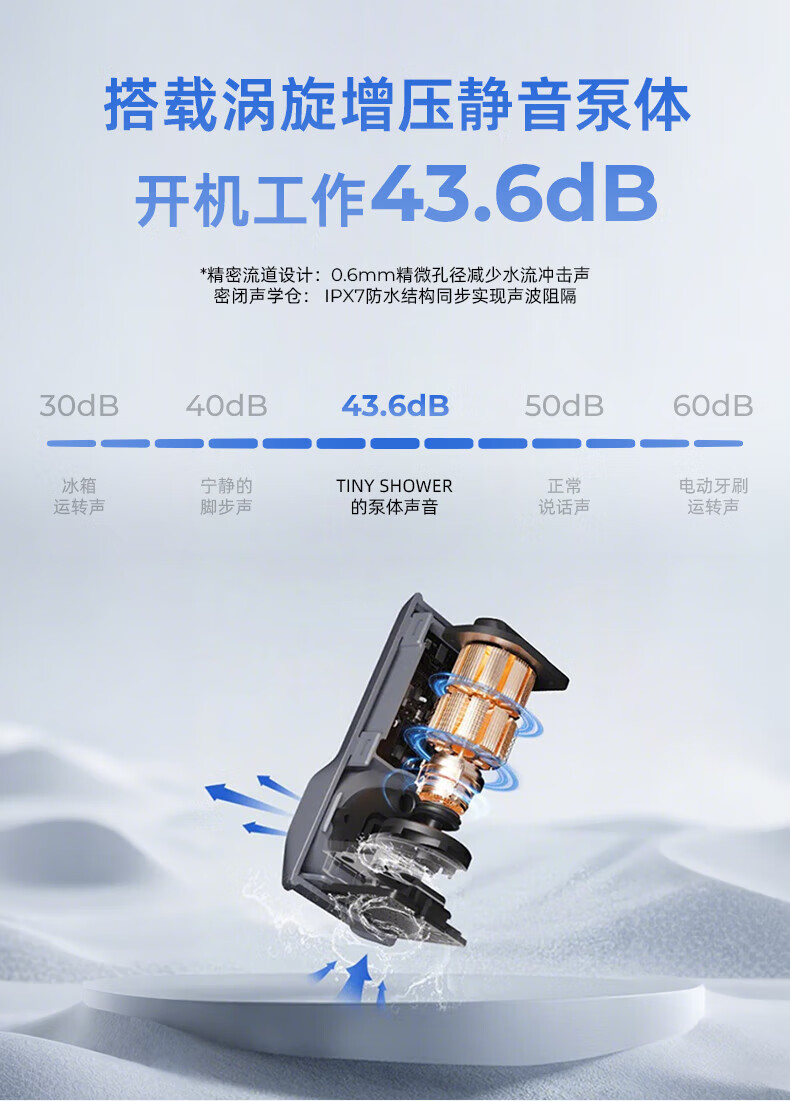颜值非常高,小东西解决大问题啊,绝对的国产之光,杠杠的,回来充满电试了一下,出水流量挺大的,设计的也很科学,希望续航时间能够长,接下来去海边河边玩水不用发愁洗簌问题了,完美的购物