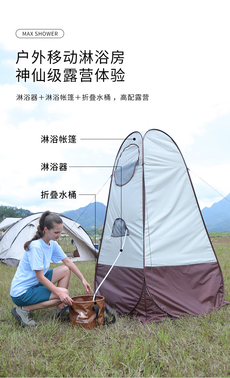这次去露营专门买的,我们3个家庭一起用,真的很方便,在外面一身汗臭味和烧烤味还是洗个澡舒服,我们带了个锅去江边打水来烧,然后兑点冷水洗得很舒服,开一档就够用了,值得推荐,另外最好买大点的淋浴帐篷带挂钩那种,好转身搓澡。