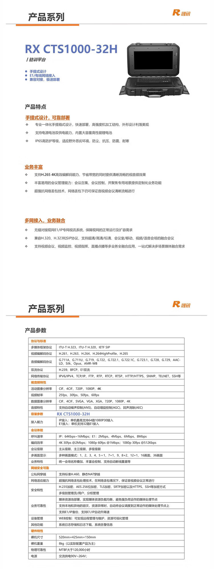 RXeagle融讯CTS1000 32H车载MCU视频服务器驻训平台 E1/有线网络接入支持视频会议等应用(含上门安装)