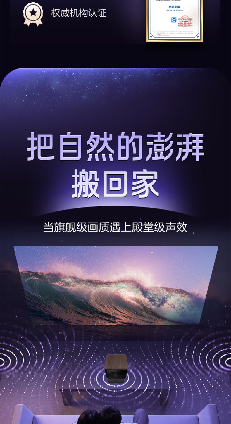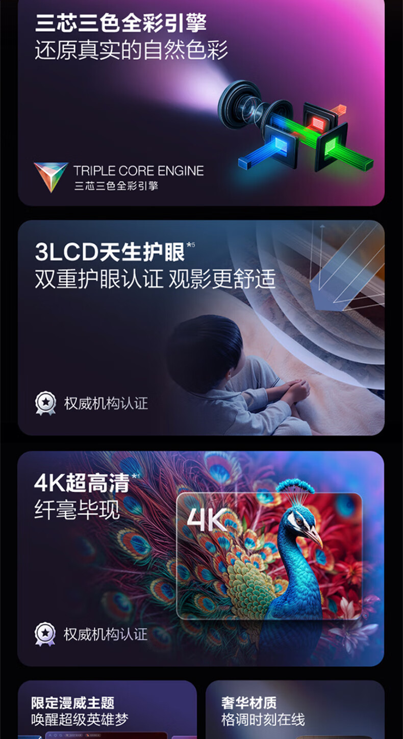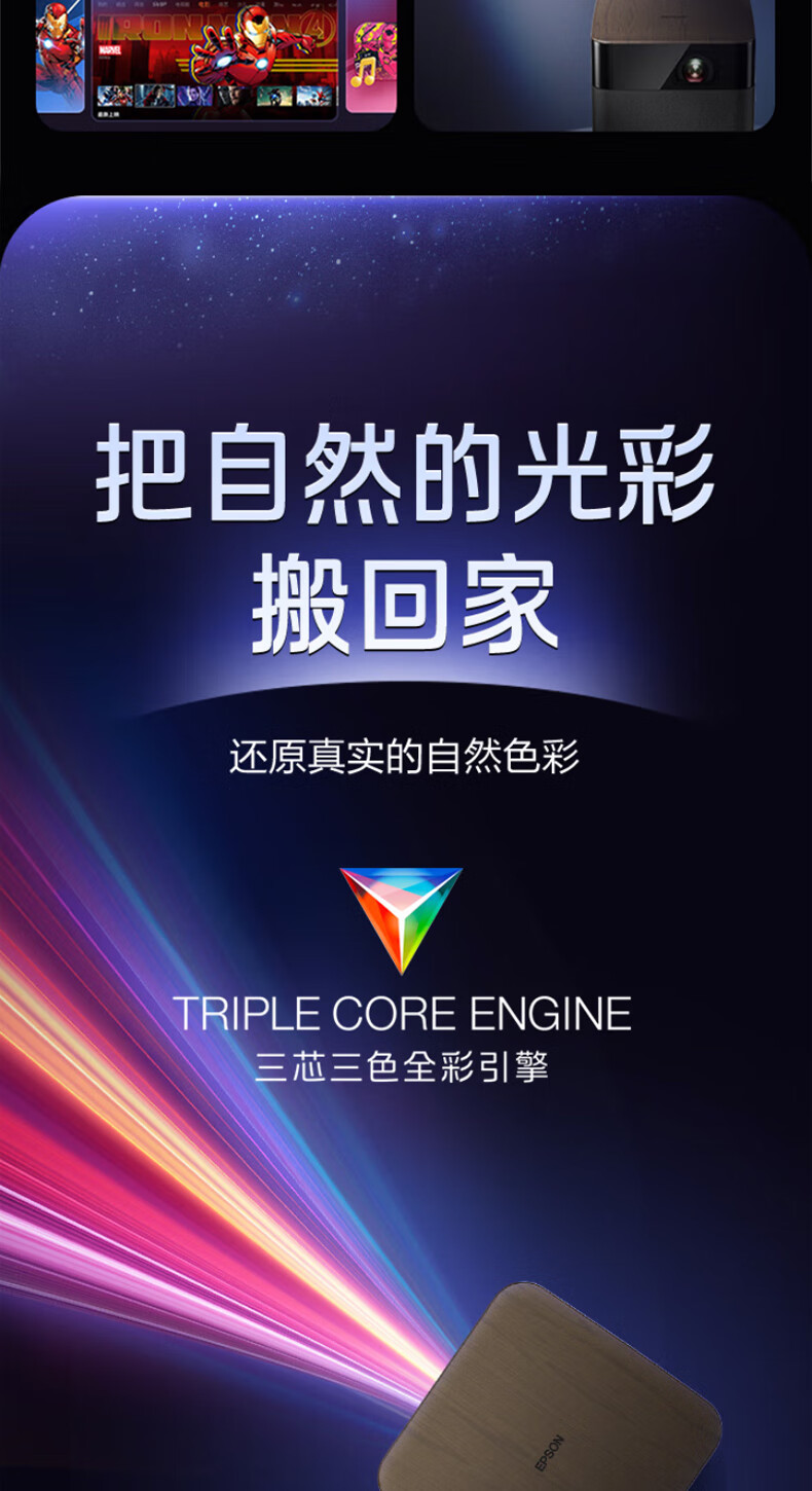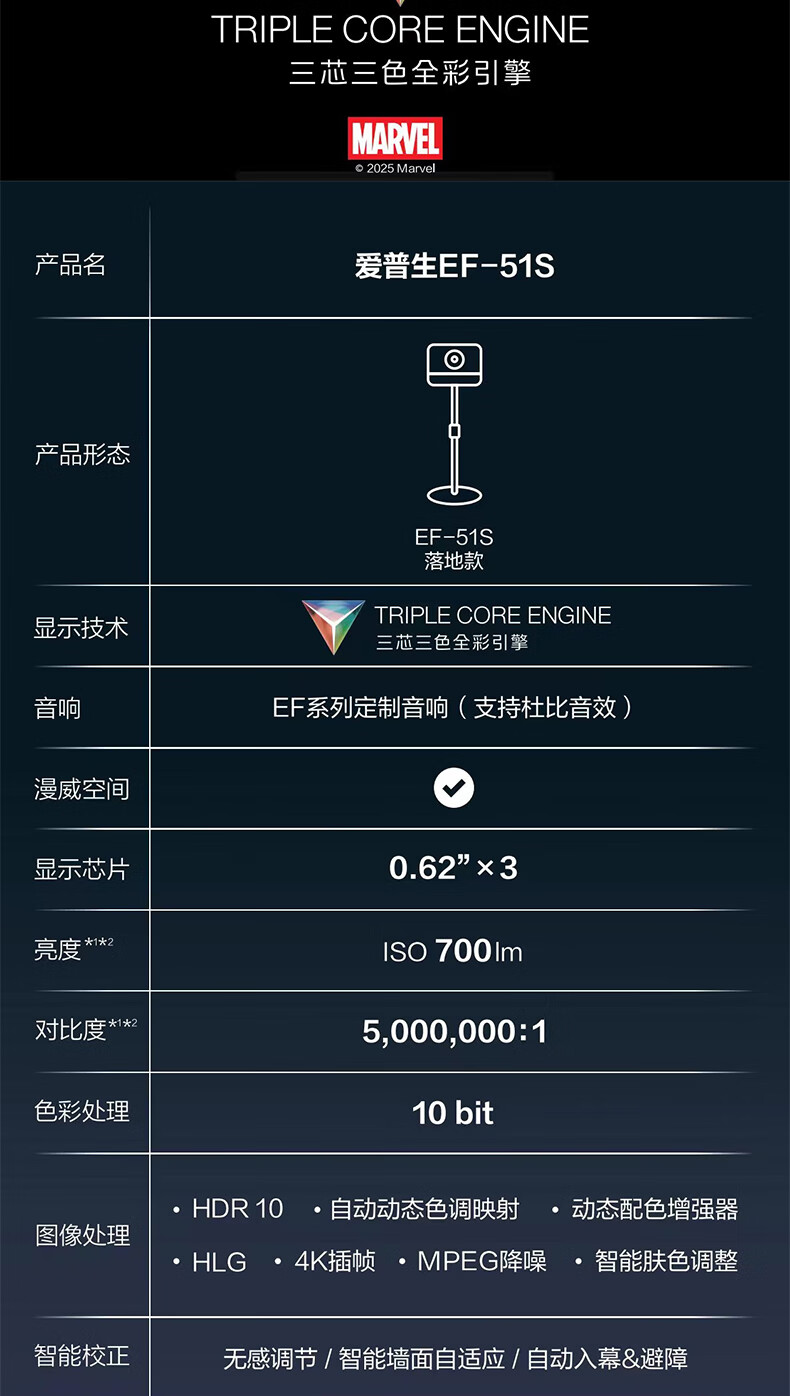 爱普生(EPSON) EF-51S/52S 家用投影仪 4K激光光源家庭影院智能投影仪 EF-51摩灯投影仪三芯三色全彩 官方标配