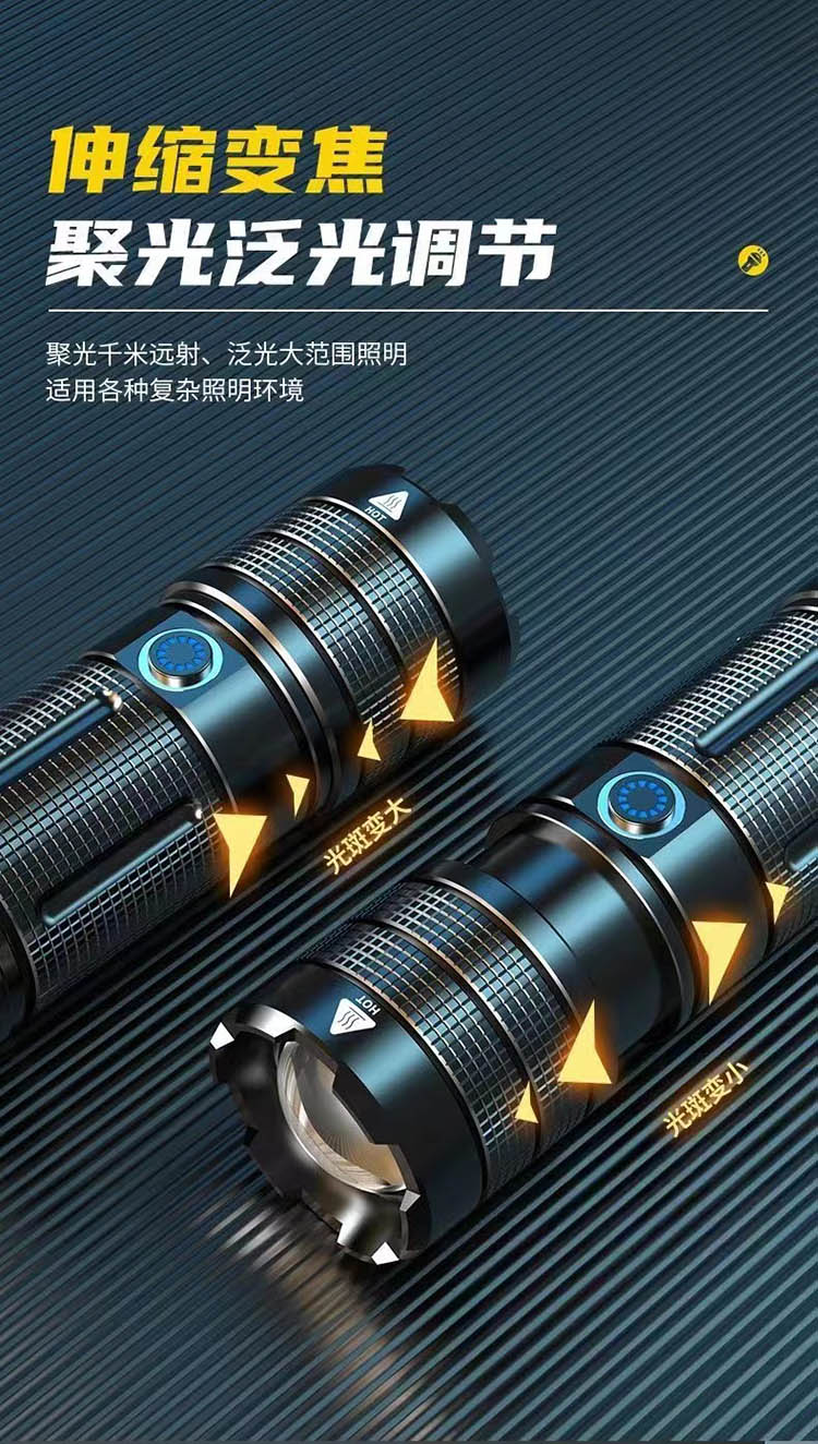 公牛适用强光手电筒可充电小型便携户外超亮远射应急耐家用LED灯 9900w普亮_伸缩变焦_智能电显_USB直充
