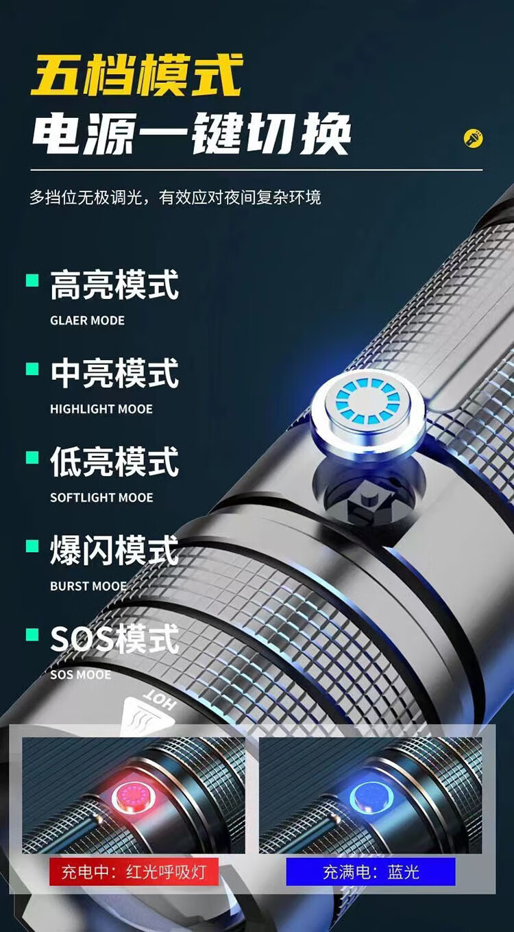 探水者苏美浦手电筒强光超亮远射(五色光切换)家用户外多功能大手电筒 旗舰版5000毫安(持续照明4-5H)