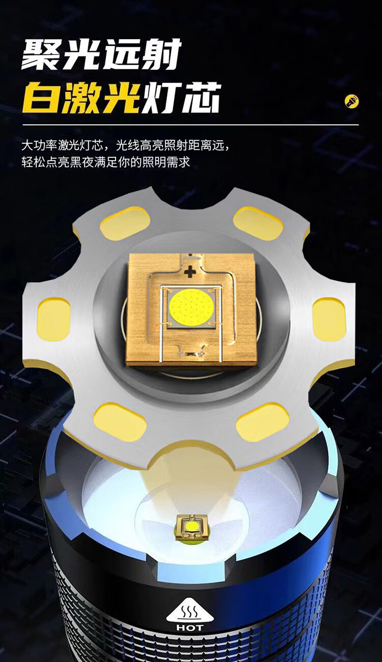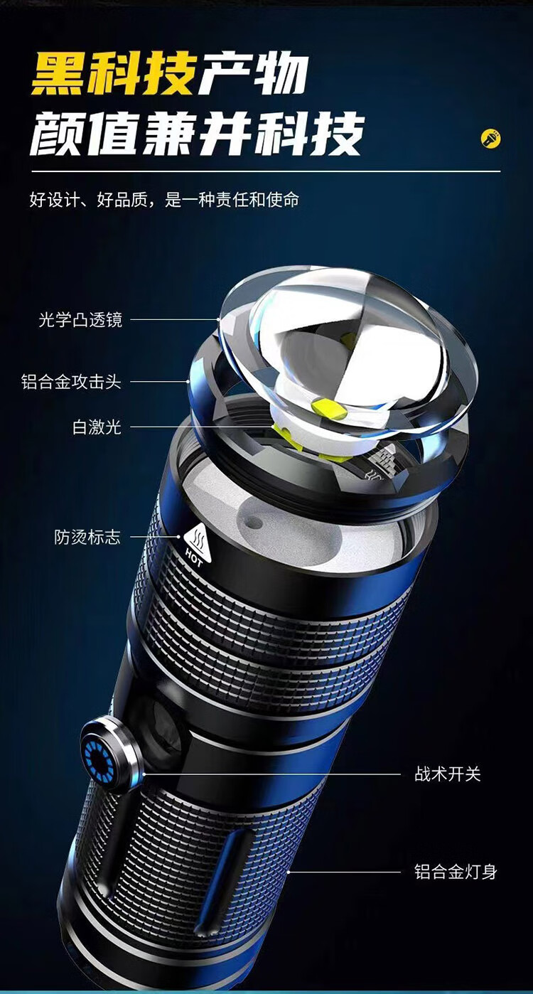 46950手电筒激光炮强光可充电超亮夜行远射大容量疝气灯家用照明 高配四锂电丨白光T4芯丨四锂电 礼盒款镭射炮机械变焦合金机身