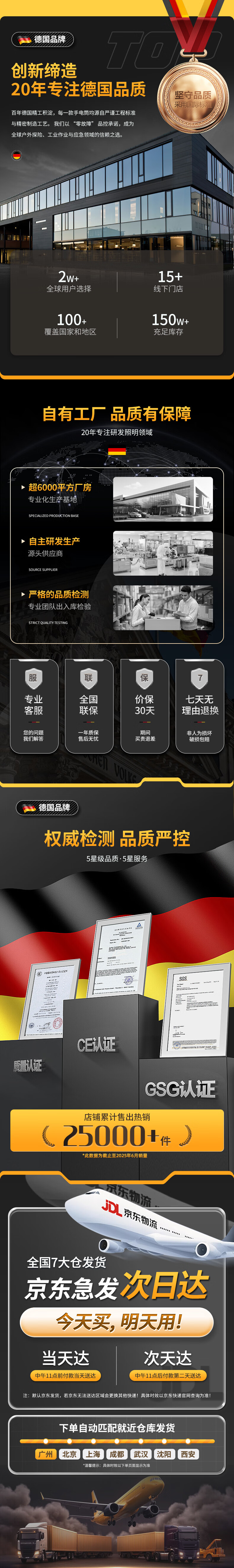 户外探险爱好者一定要试试这款德国强光手电筒!三种灯光模式自由切换,远射模式射程超 500 米,深山夜探轻松照亮前方;柔光模式适合营地照明,光线柔和不刺眼。内置大容量锂电池,满电续航长达 20 小时,还能给手机应急充电。尾部磁吸设计太贴心,吸附在车顶就能当检修灯,每一处细节都充满巧思!