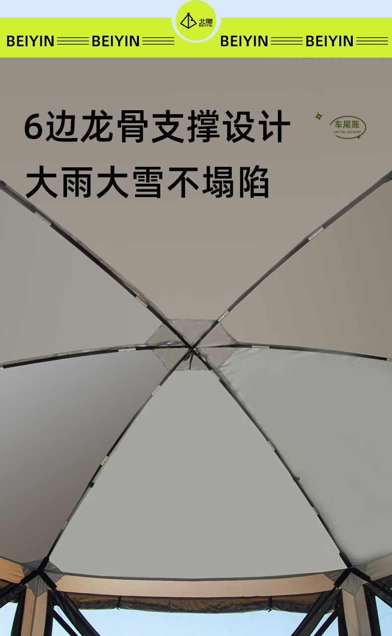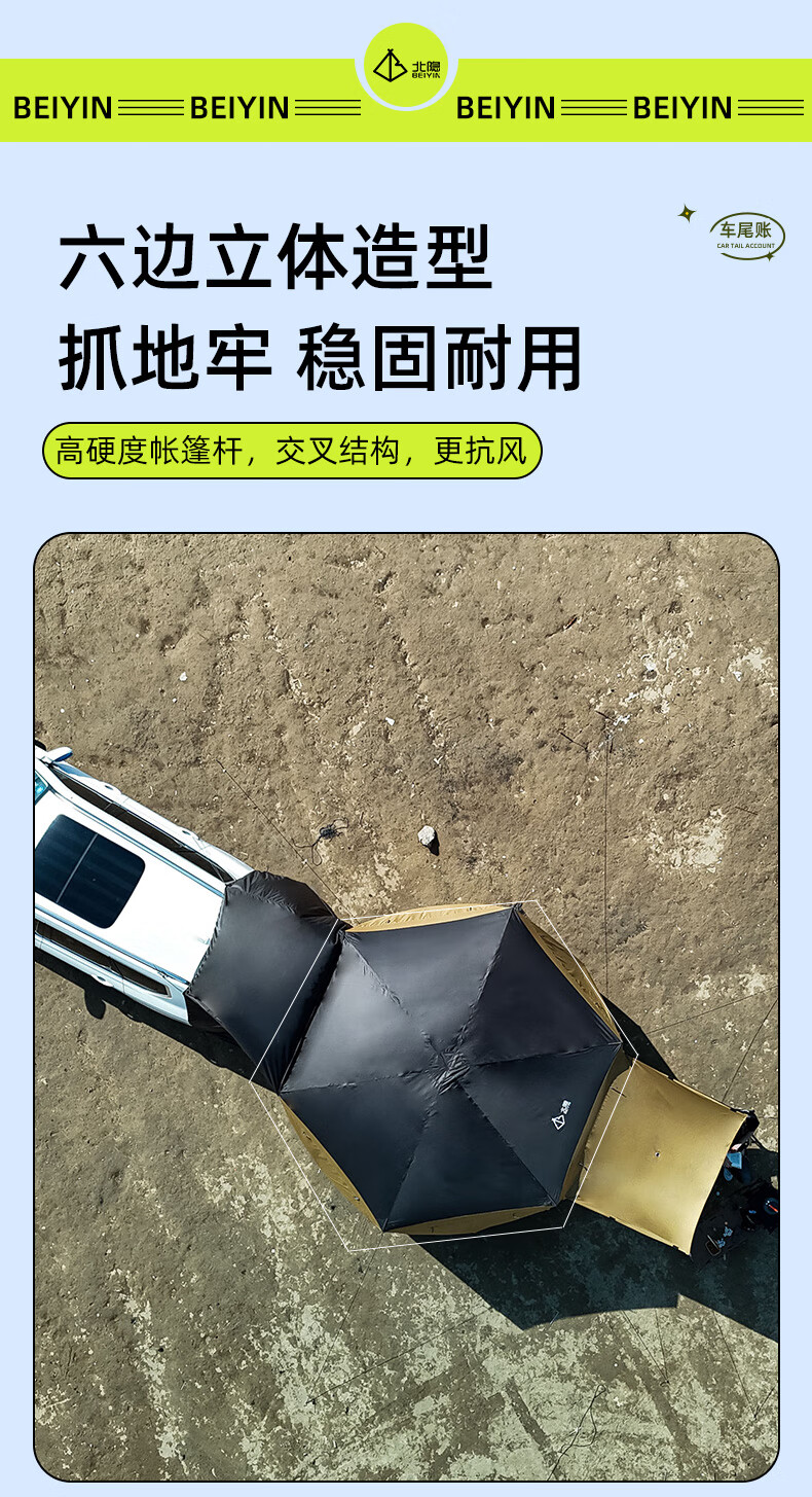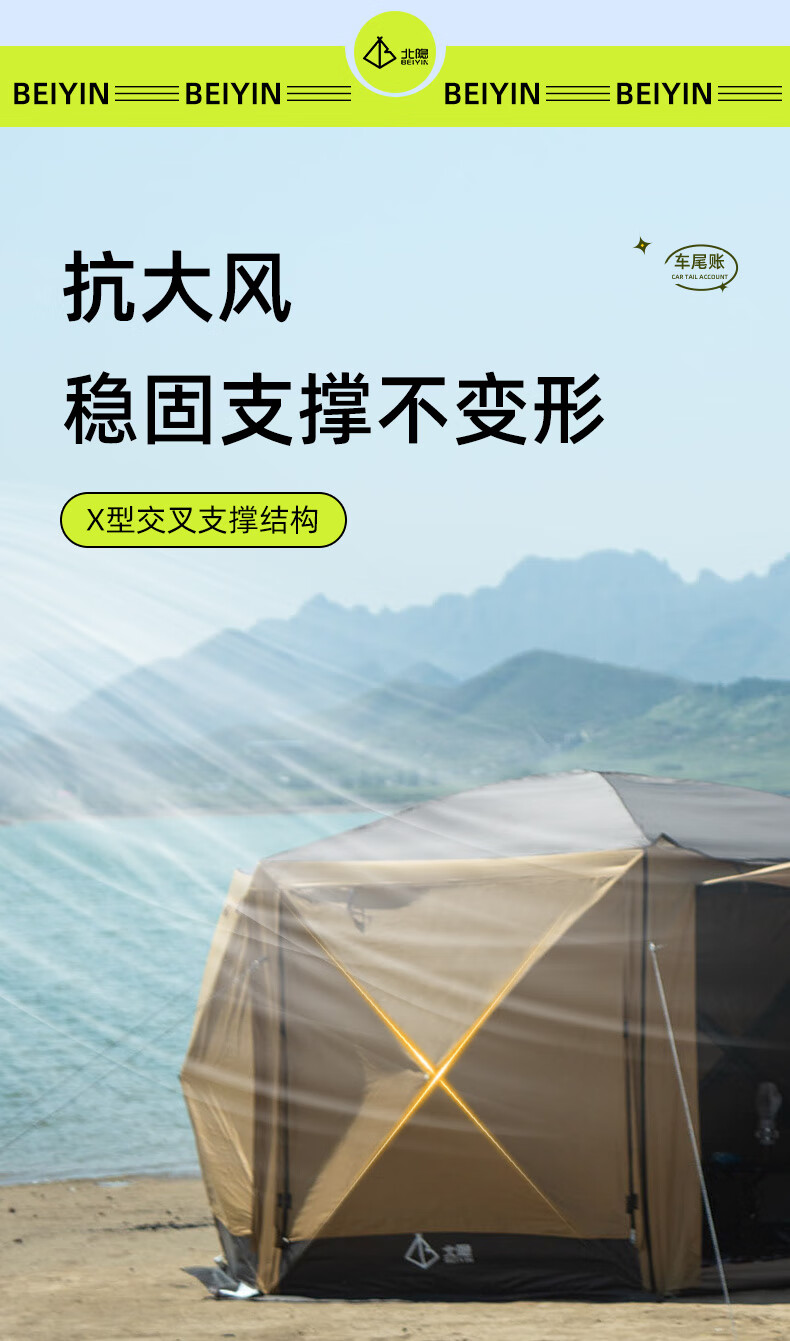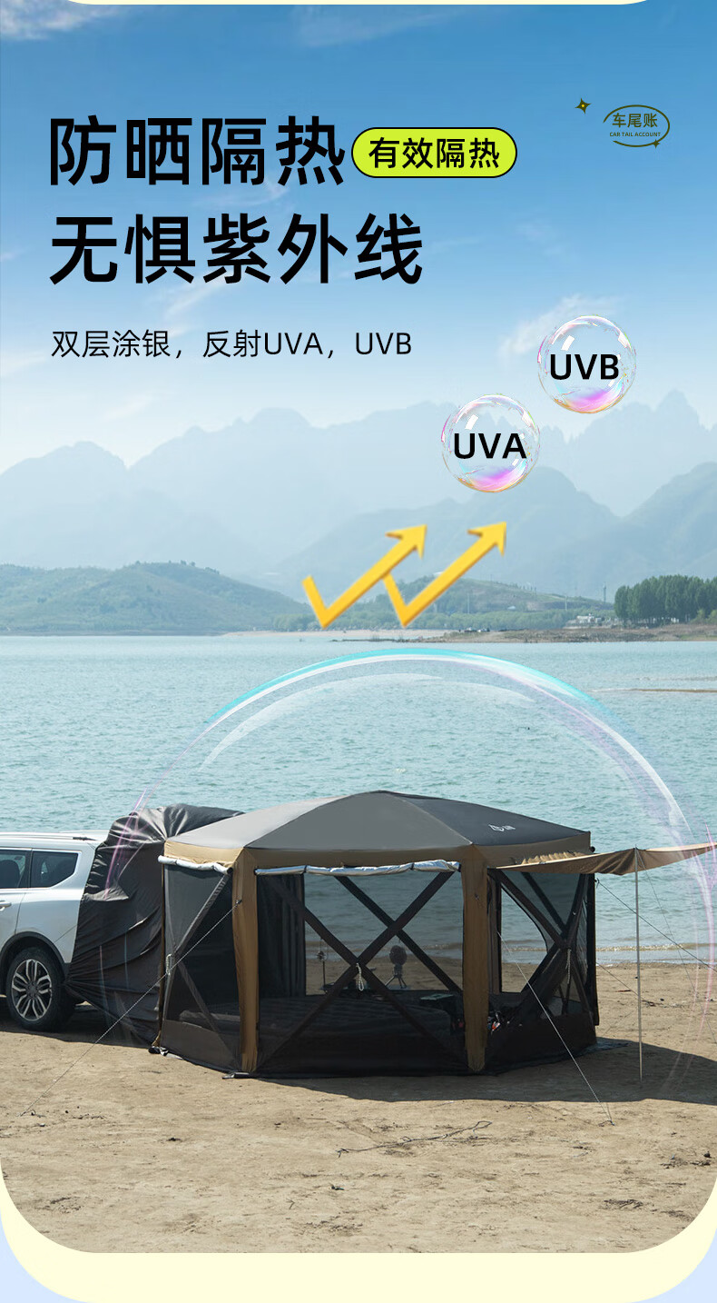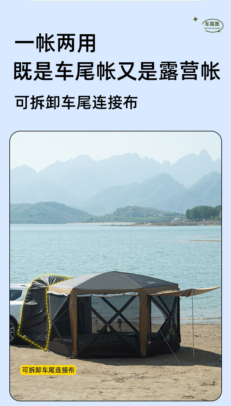 免搭建六角车尾帐篷户外露营装备防雨防风四季帐篷可过夜大空间 [5-6人]车尾帐-单帐篷(带烟筒口)