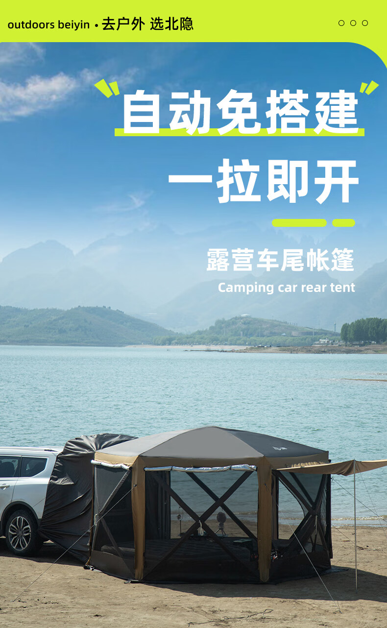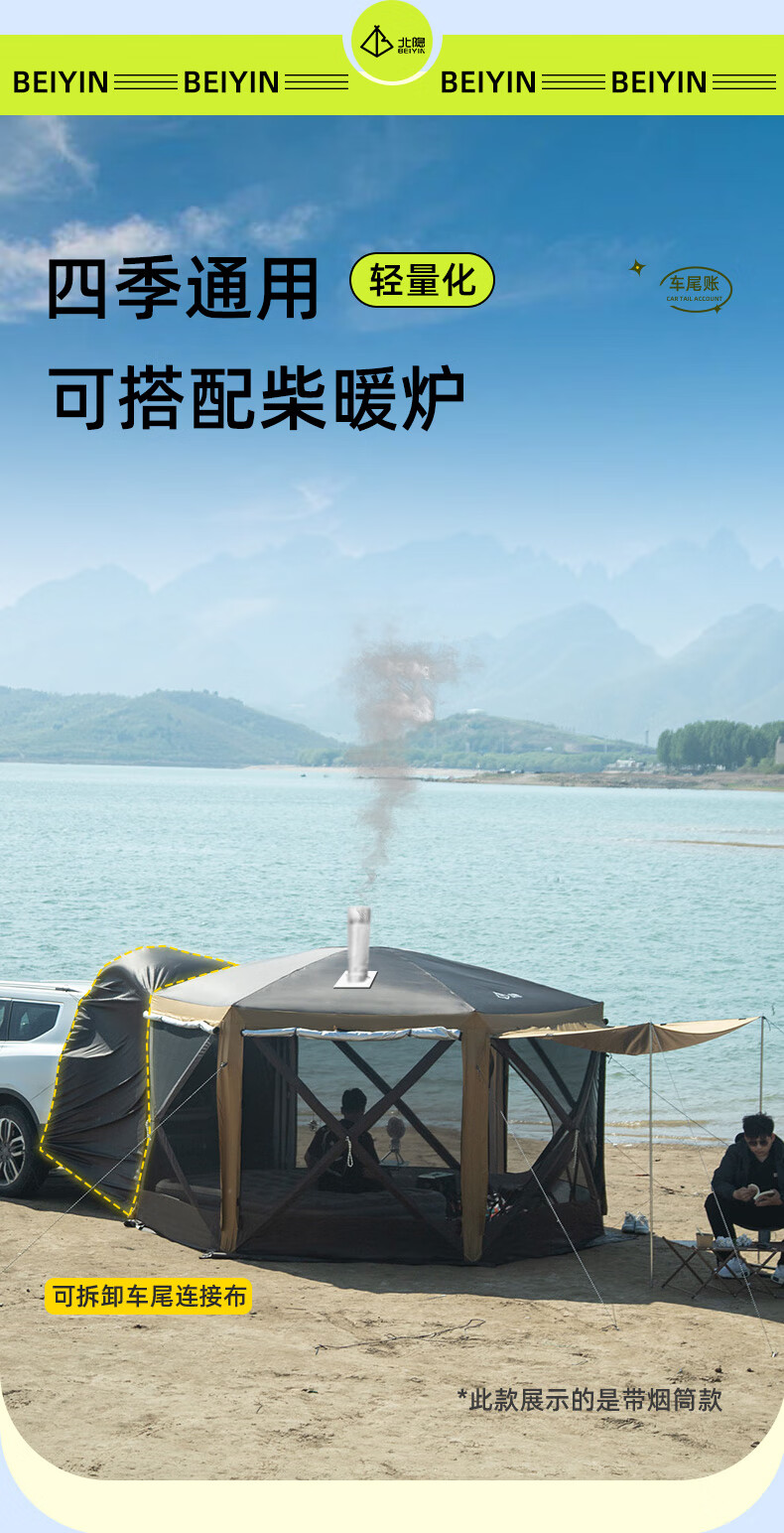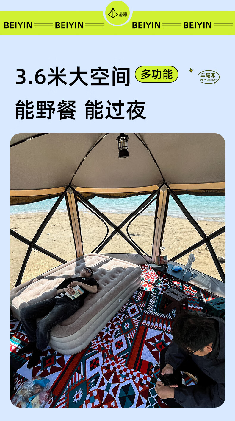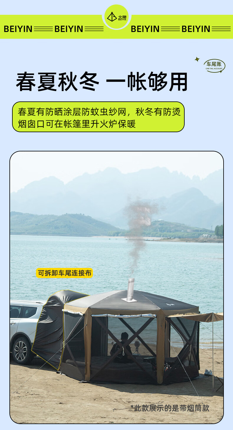 免搭建六角车尾帐篷户外露营装备防雨防风四季帐篷可过夜大空间 [5-6人]车尾帐-单帐篷(带烟筒口)