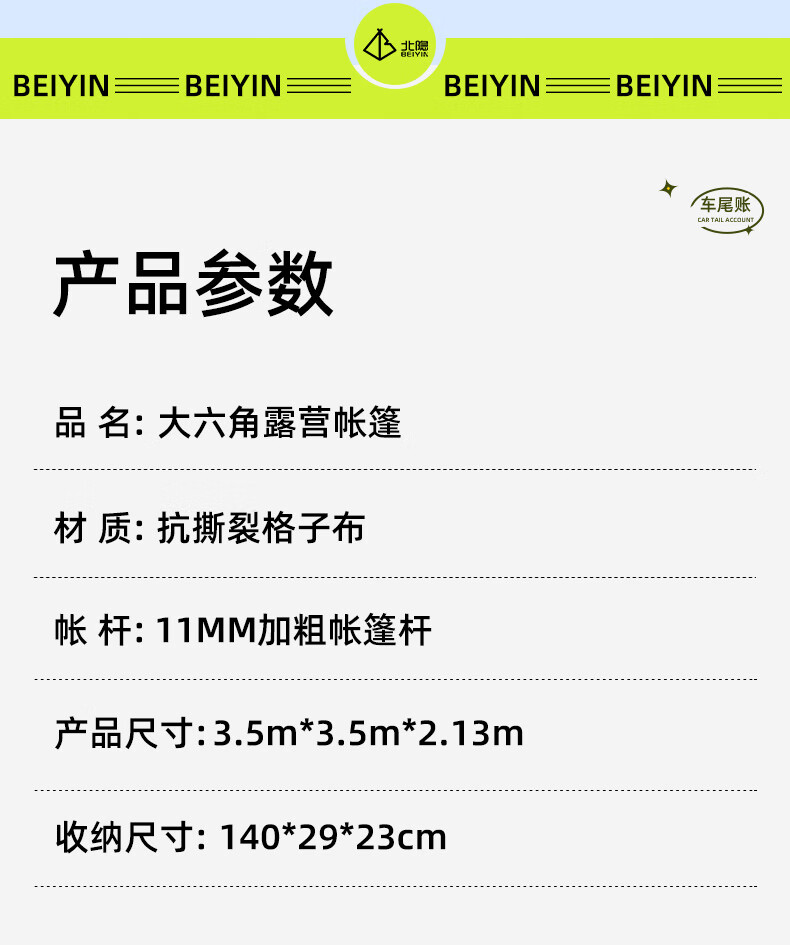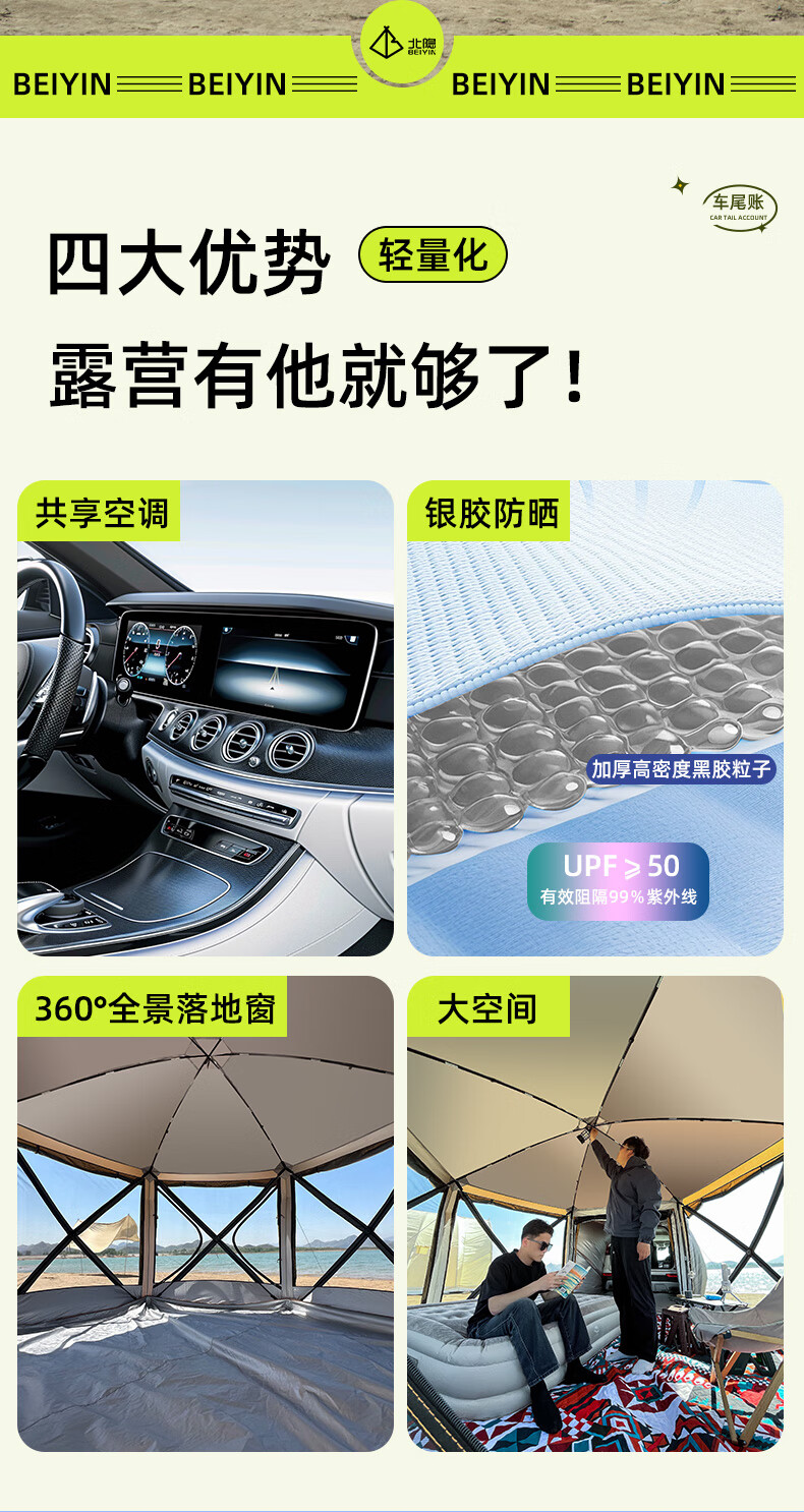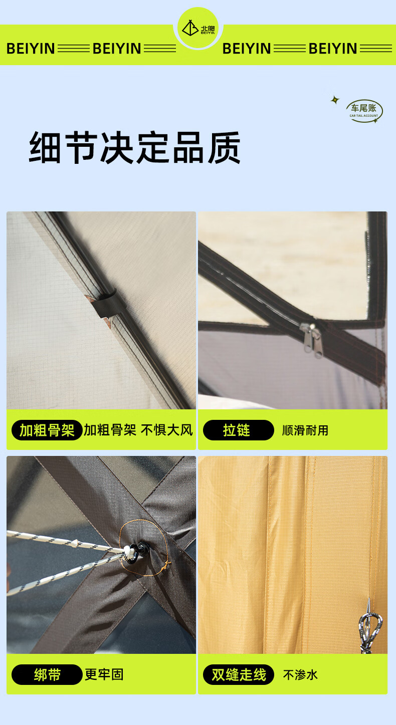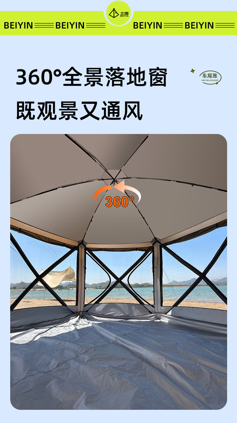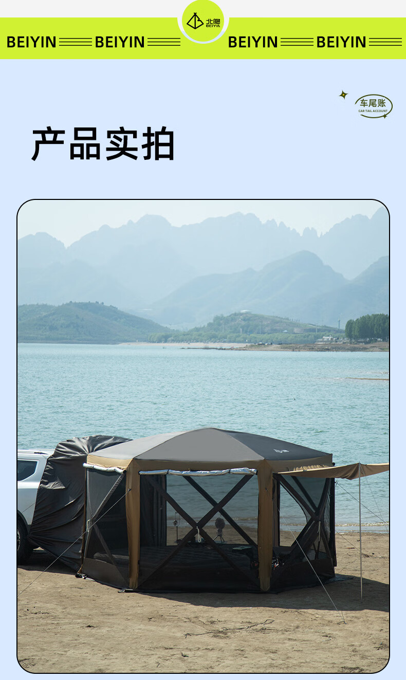 免搭建六角车尾帐篷户外露营装备防雨防风四季帐篷可过夜大空间 [5-6人]车尾帐-单帐篷(带烟筒口)