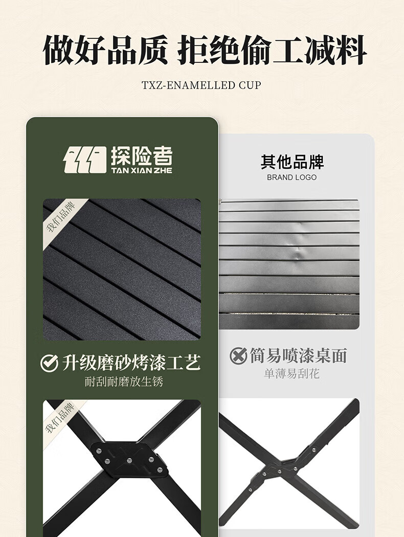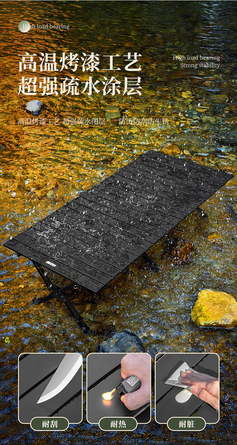 这款桌子真的很好用,桌面感觉材料耐磨,油污容易擦掉,特别适合户外露营