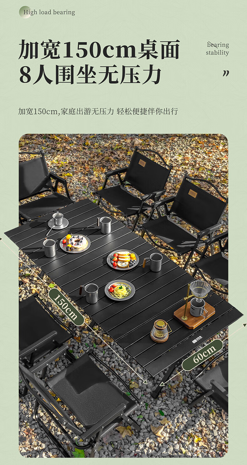 原始人户外蛋卷桌便携式折叠桌野餐桌椅露营装备用品野炊野营套装 120款木色桌+加高木色云舒椅*4