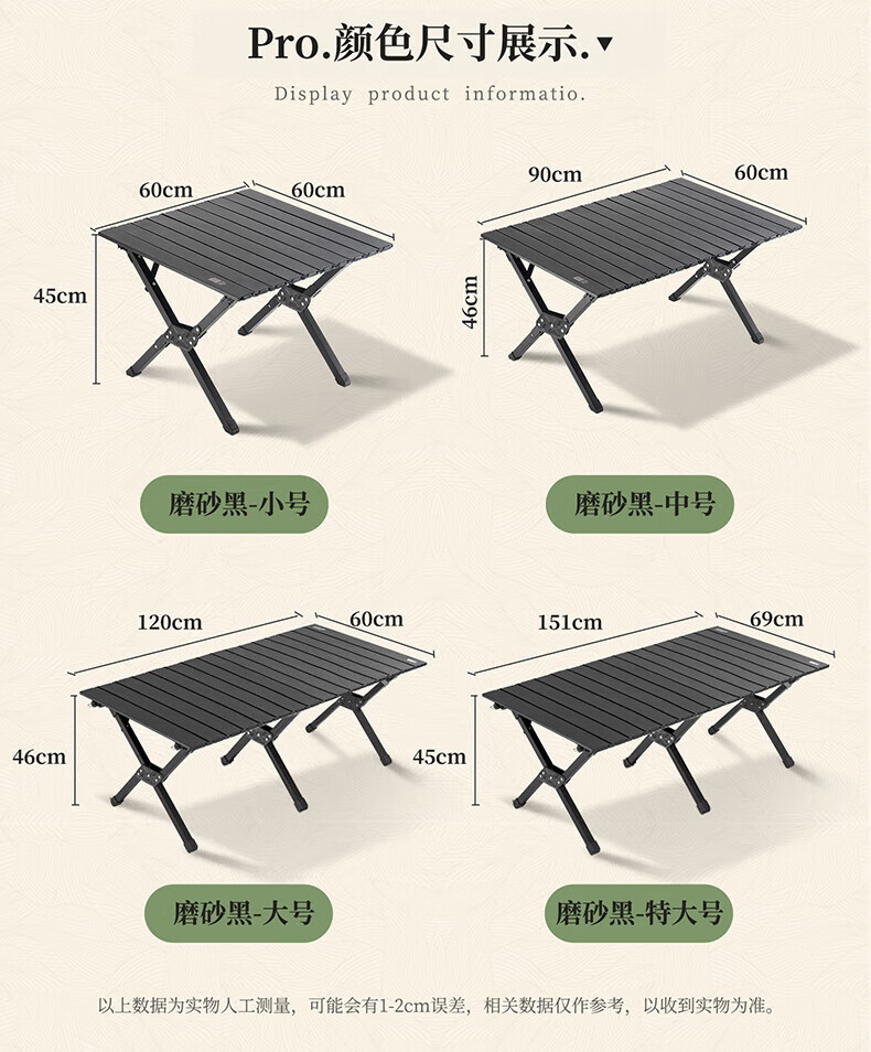 探险者蛋卷桌户外折叠桌便携式露营桌椅套装家用茶几桌椅野炊全套装备 90cm磨砂黑折叠蛋卷桌+收纳包