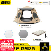 探险者帐篷户外露营便携天幕帐篷速开加厚黑胶防雨防晒野营装备 【钛黑款六角帐篷】4-6人+充气床