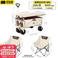 探险者露营车露营推车户外可折叠推车野餐便携拉杆手拉车桌板野营 【云白+露营摆摊双人套装】
