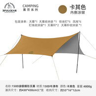 三峰出150D天幕涂银涂银户外防晒遮阳防水全遮挡露营野营蝶形黑胶庇护所 18㎡3-8人卡其蝶形150D 4.3*4.3M