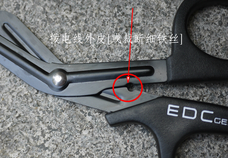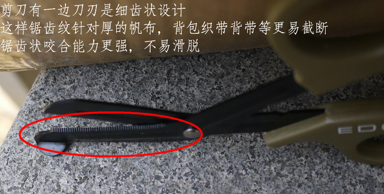 特点;手柄人学工程设计,省力带劲,刀刃部分黑色氧化杜绝反光,带齿结构即便再难剪的尼龙布料还是伞绳等等一样迎刃而解,圆孔有剥线等等功能